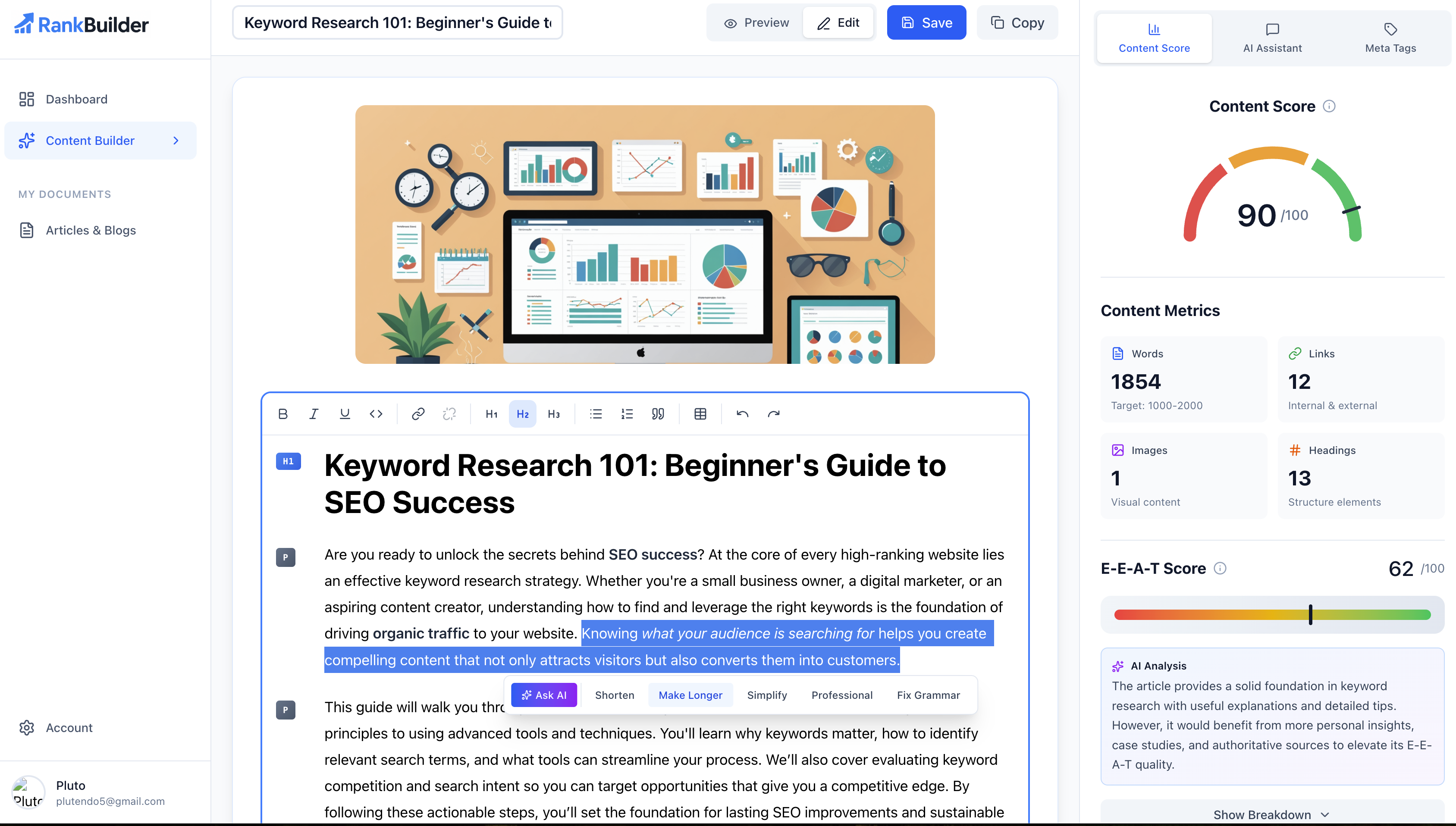 This tool helps you create AI-ready, SEO-rich content. You can generate text that is designed to be cited by popular AI models like ChatGPT, Gemini, and Claude. Furthermore, the content produced is optimized to achieve higher rankings on Google search results. This product is designed to enhance your online visibility and ensure your content performs well in both AI and traditional search environments.