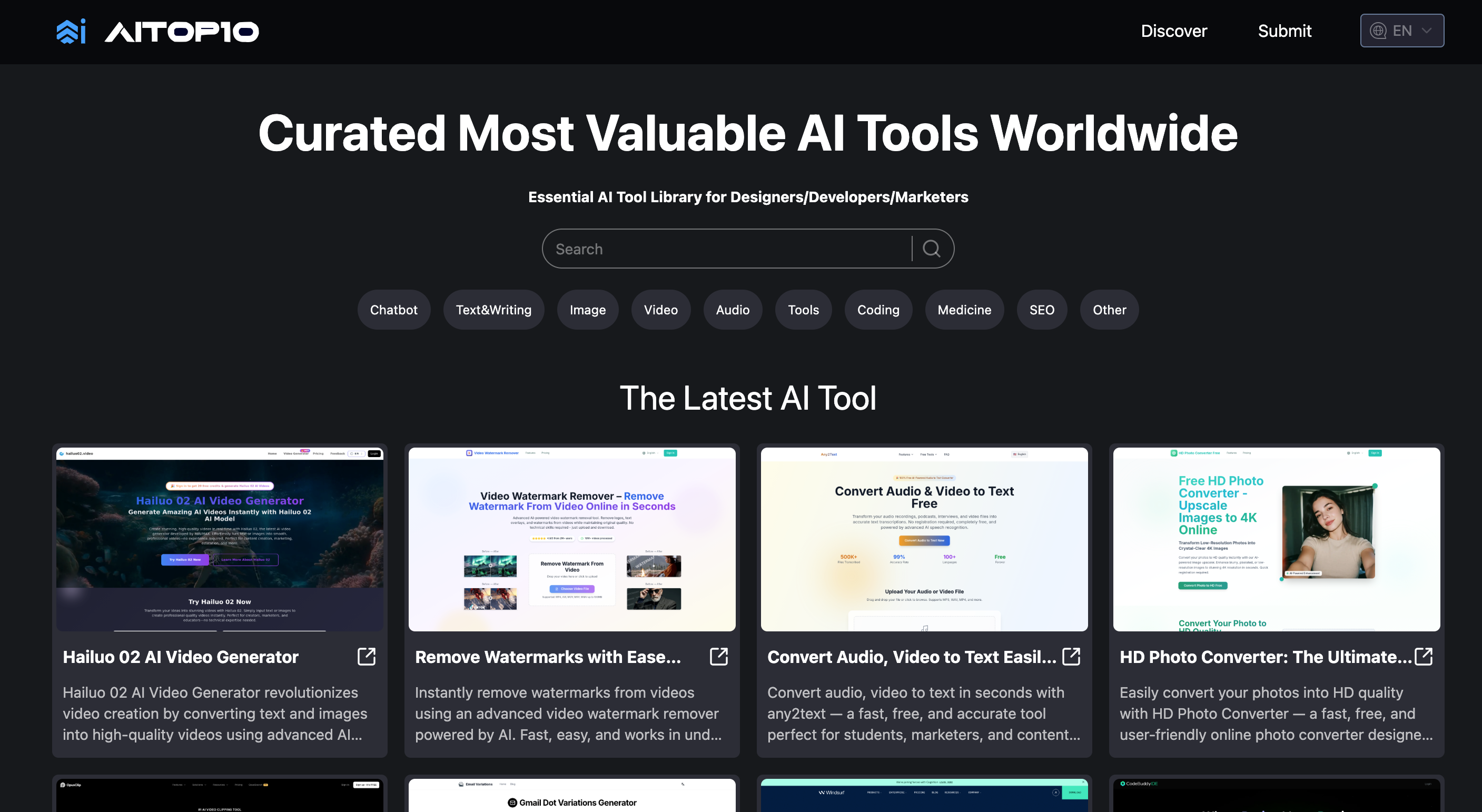 Discover thousands of the best AI tools, curated and organized for any task. Go beyond the top 10 and find the perfect AI solution for your needs.