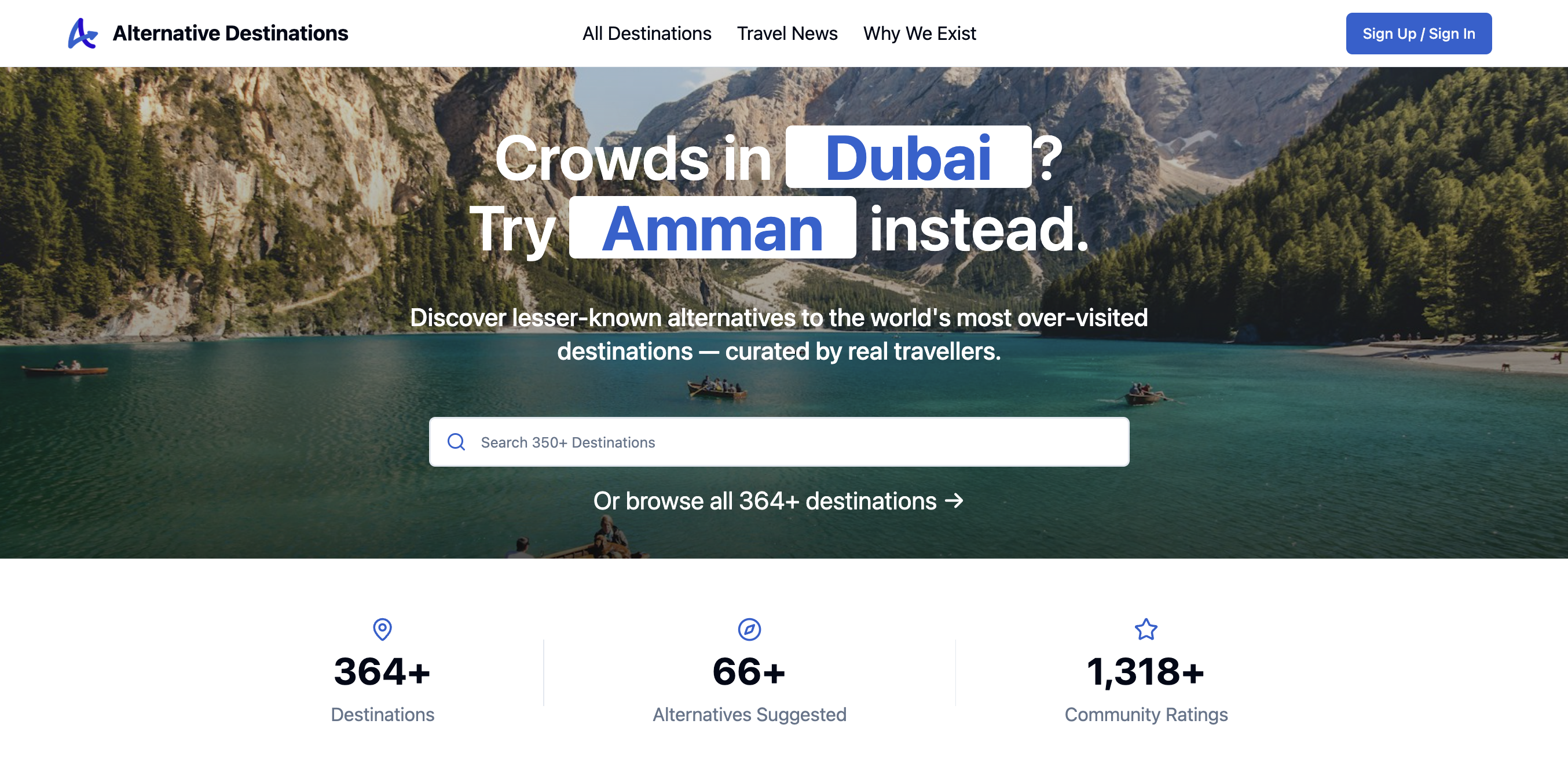 Alternative Destinations provides a community-driven platform where you can discover and rate travel spots around the world. Based on community suggestions and crowdsourced ratings, this tool helps you find new places to visit. You can explore a variety of travel options and see what other travelers recommend to help you choose your next journey.