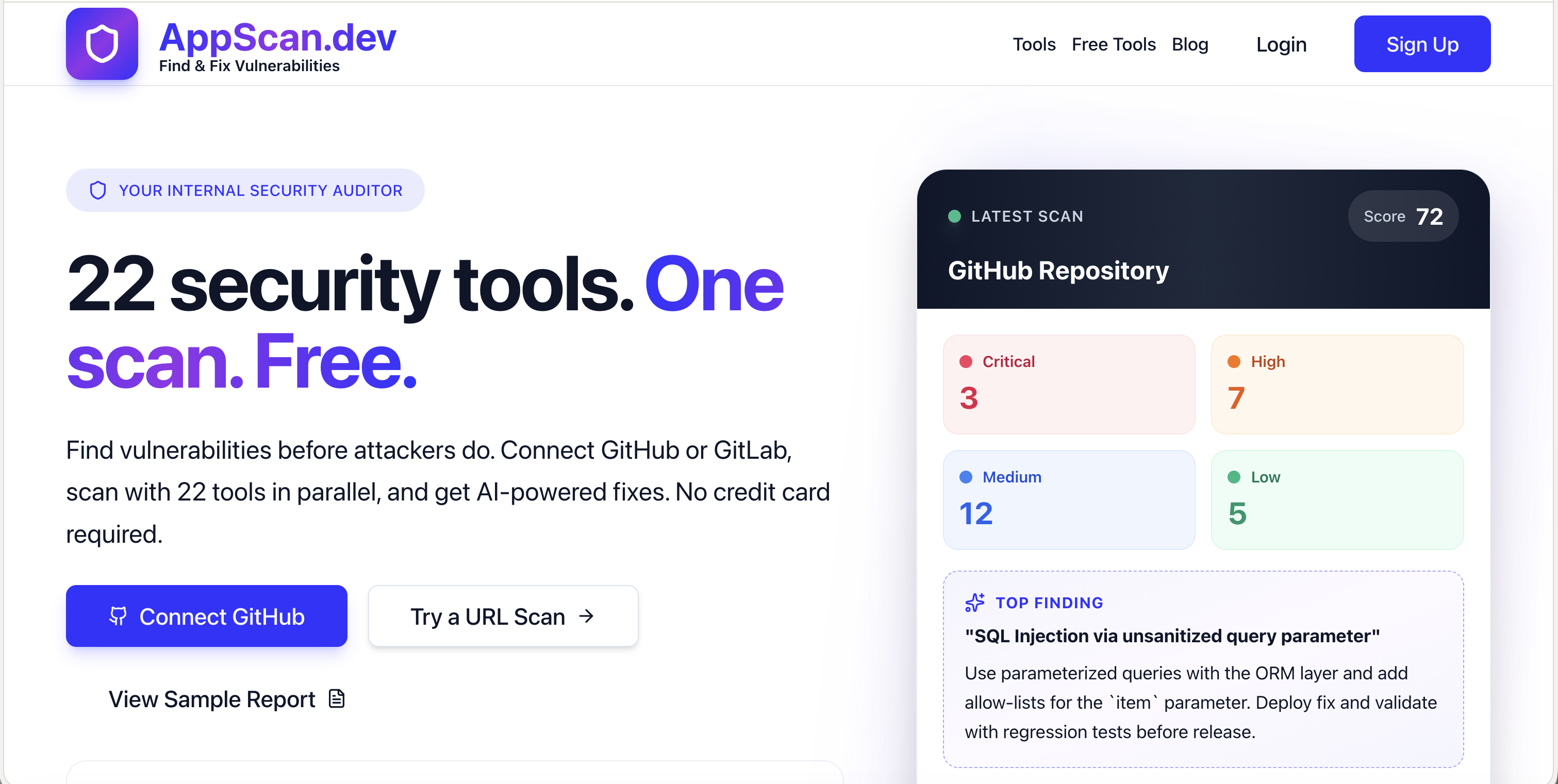 20+ Security tool that you can scan for free for your site as well as your repo - find and fix issues before, during and post launch as new vulnerabilities are discovered daily! https://appscan.dev