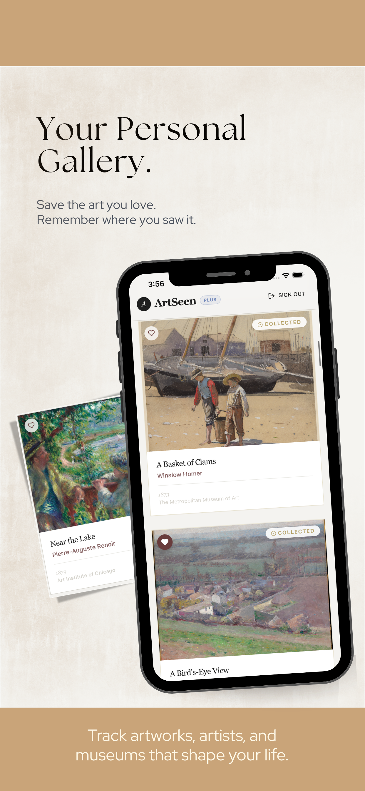 ArtSeen is a personal archive for artworks you discover in museums and galleries. Save pieces you’ve seen, organize them into your own collection, and revisit your taste over time. It’s designed to make the art you experience stick with you—beyond the visit—so you can collect, curate, and return to it anytime.