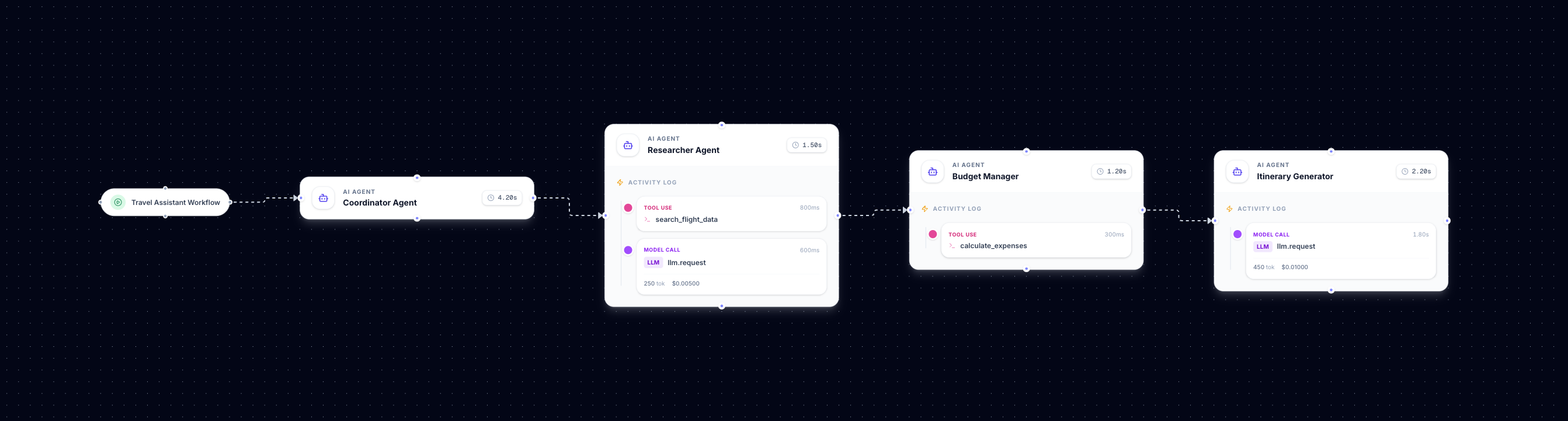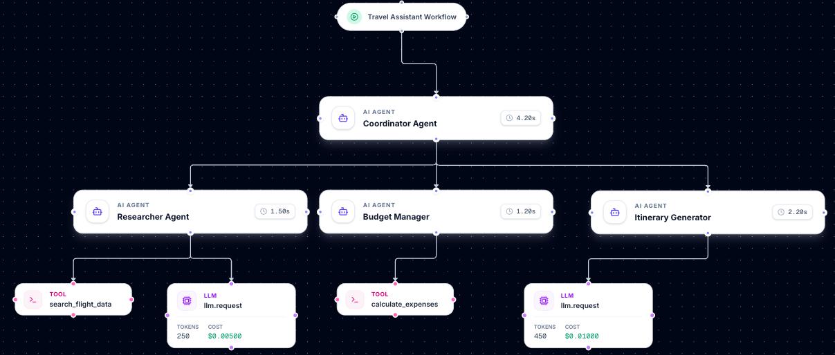 Today, Asymmetry is an observability platform for AI agents — giving engineering teams deep visibility into execution: traces, tool usage, reasoning paths, cost, and failures. Tomorrow, Asymmetry will be the build-time governance and security gate between development and production — running vulnerability testing, policy compliance checks, and behavioral validation before a single user ever interacts with your agent.