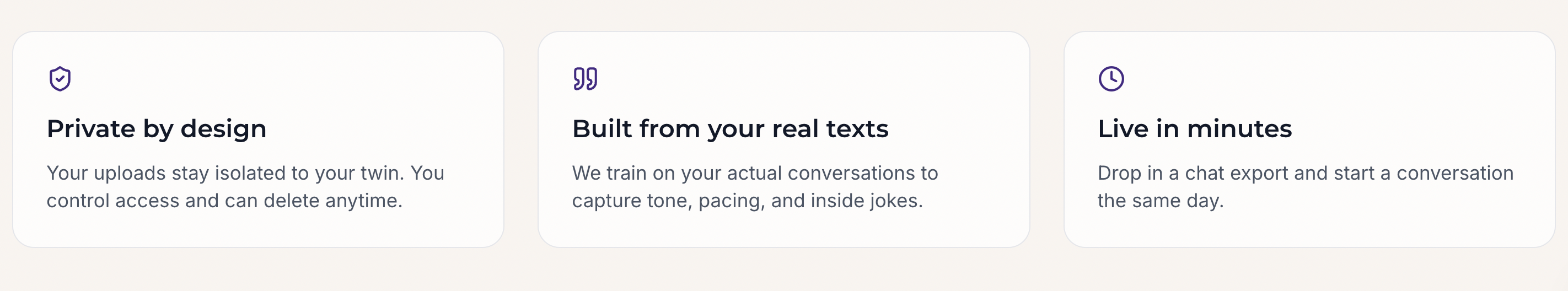 Bring Back lets you talk to the person you are missing by creating an AI Twin from your past conversations. You can upload your chat screenshots securely to the 1nk.ai platform to regenerate the personality and texting style of a specific person, enabling you to reconnect with memories through interactive dialogue.