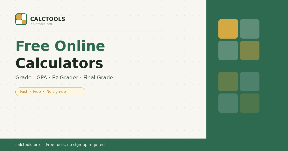 CalcTools provides a comprehensive suite of free online calculators designed specifically for students and educators. You can easily determine your academic standing using the GPA calculator, calculate test scores with the Ez Grader, and manage your grades effectively throughout the semester. These tools help you stay on track with your academic goals by providing quick and accurate mathematical results for various school-related needs.