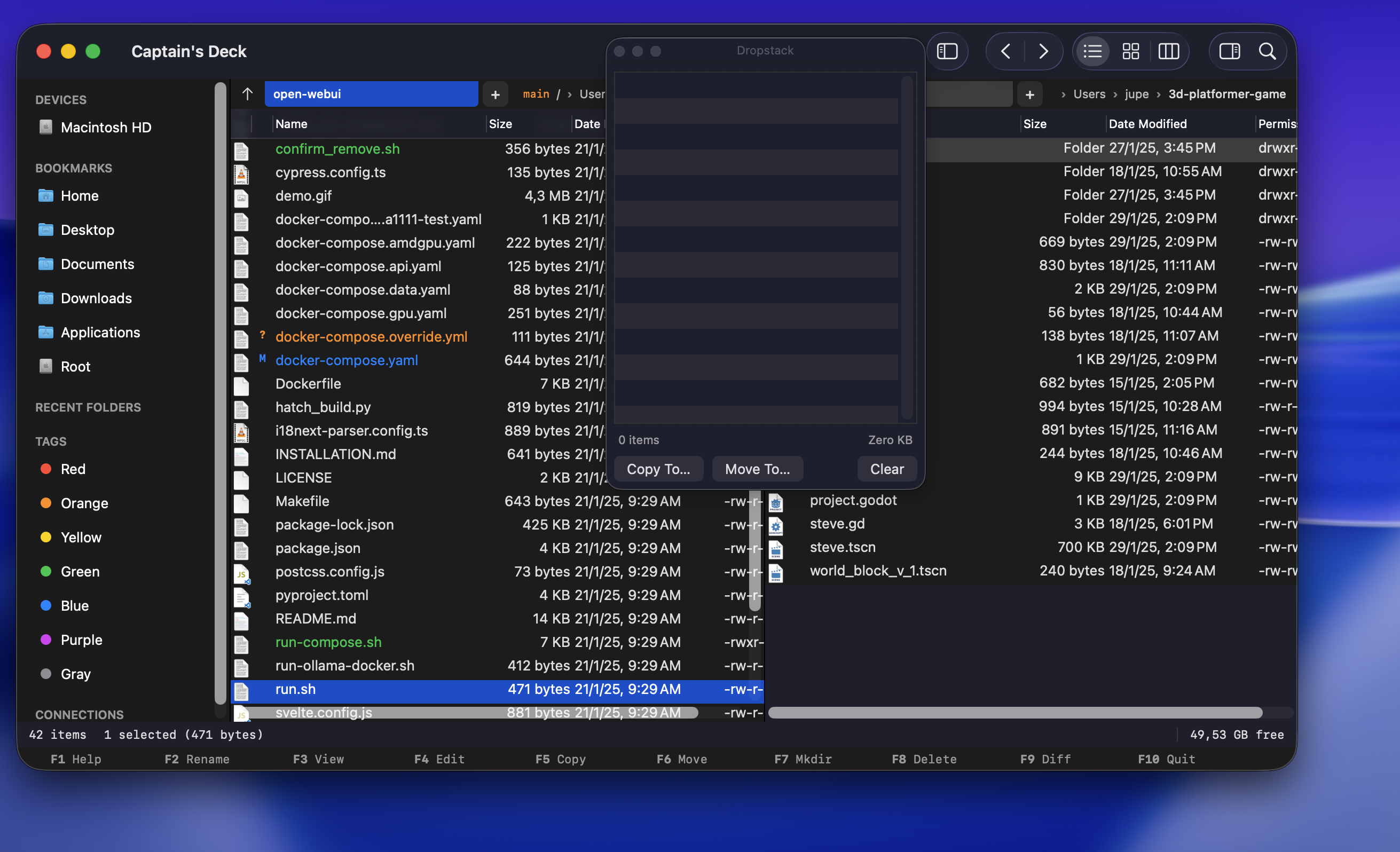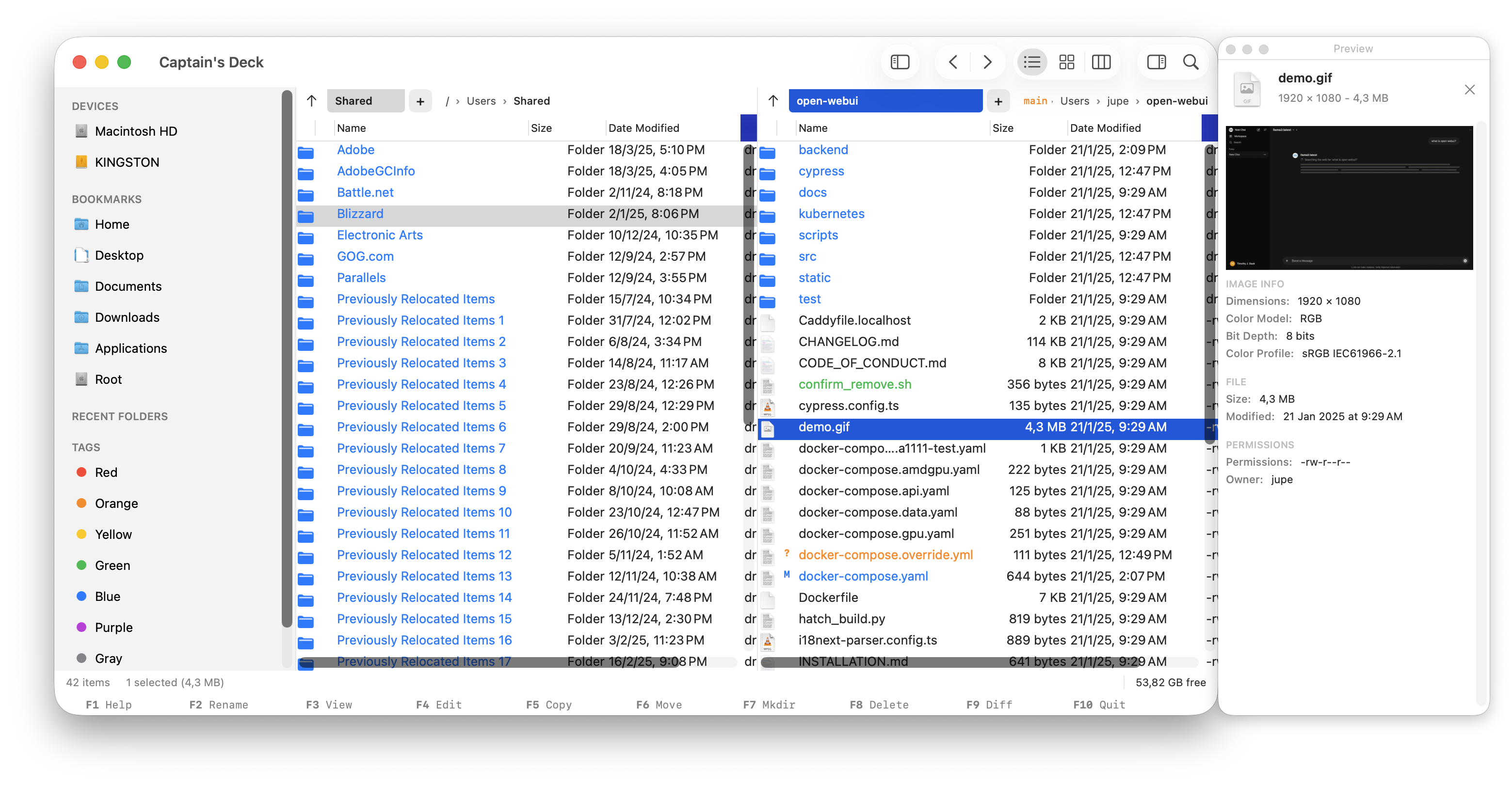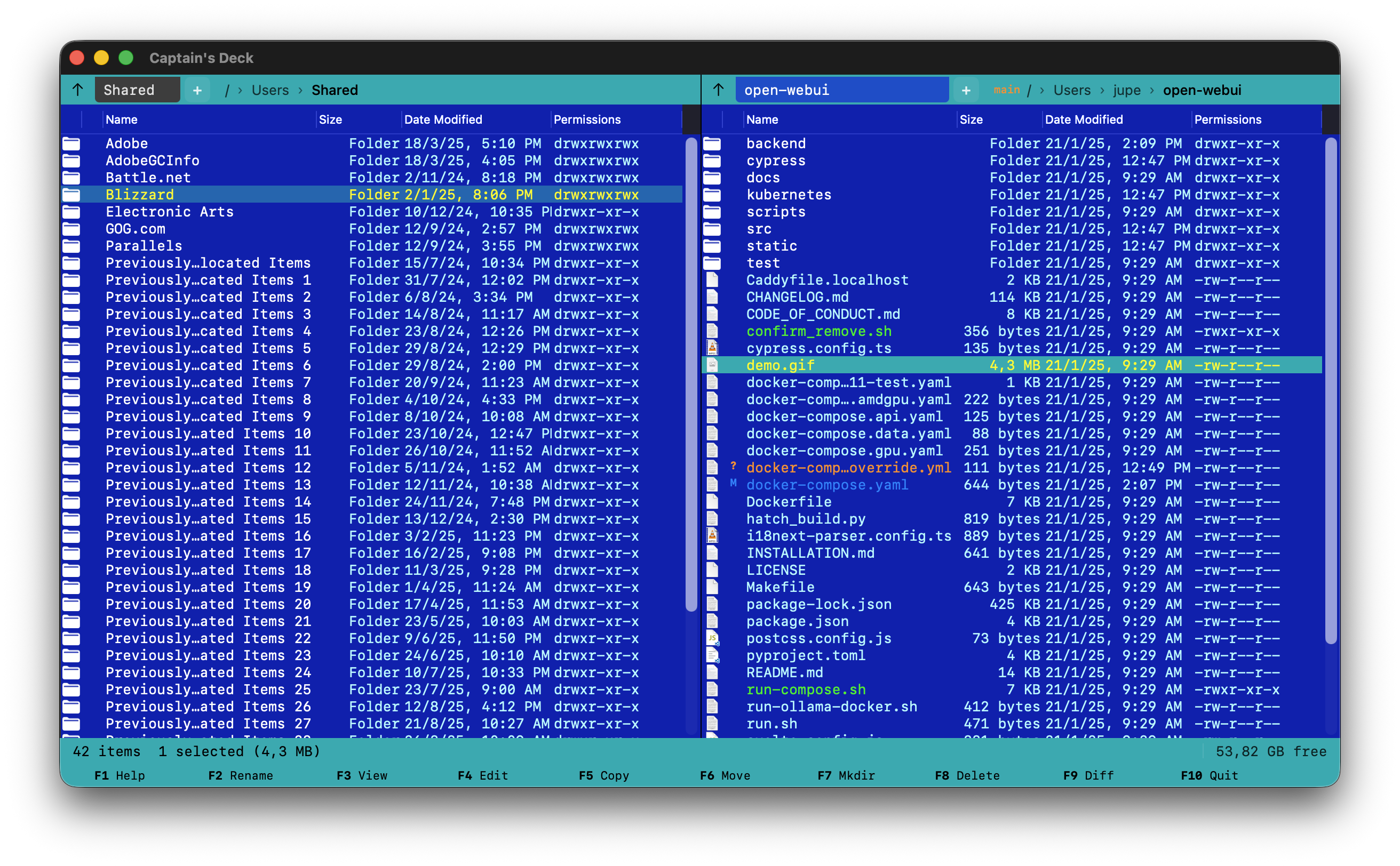 Captain's Deck is a dual-pane file manager for macOS, inspired by classics like Norton Commander and Total Commander.