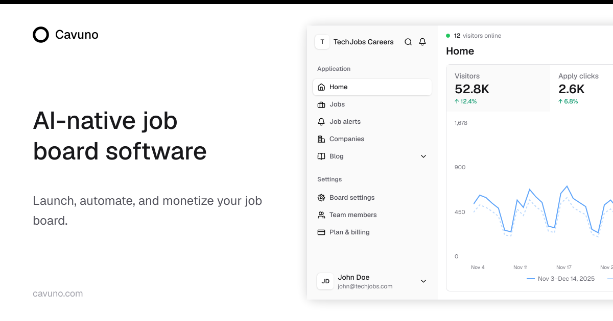Cavuno is an AI-native job board platform designed to operate with minimal manual intervention. You can launch and manage a fully automated job board that leverages artificial intelligence to streamline recruitment and listing processes. This tool helps you create a self-sustaining employment marketplace using modern automation, allowing you to focus on strategy while the platform handles the day-to-day operations of managing job postings and candidate discovery.