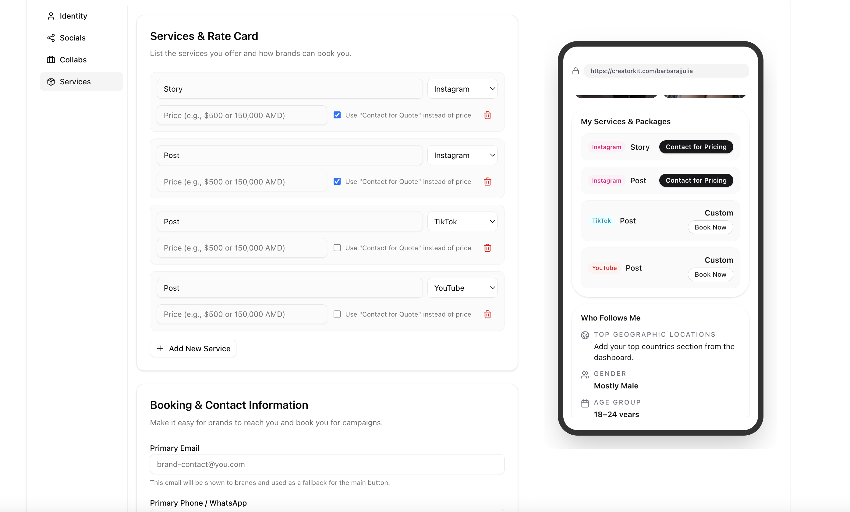 👋 Hey! I’m Ruben, the maker of CreatorsKit. CreatorsKit started from a simple problem I kept seeing: creators need a clean, professional page to show who they are, what they do, and ho