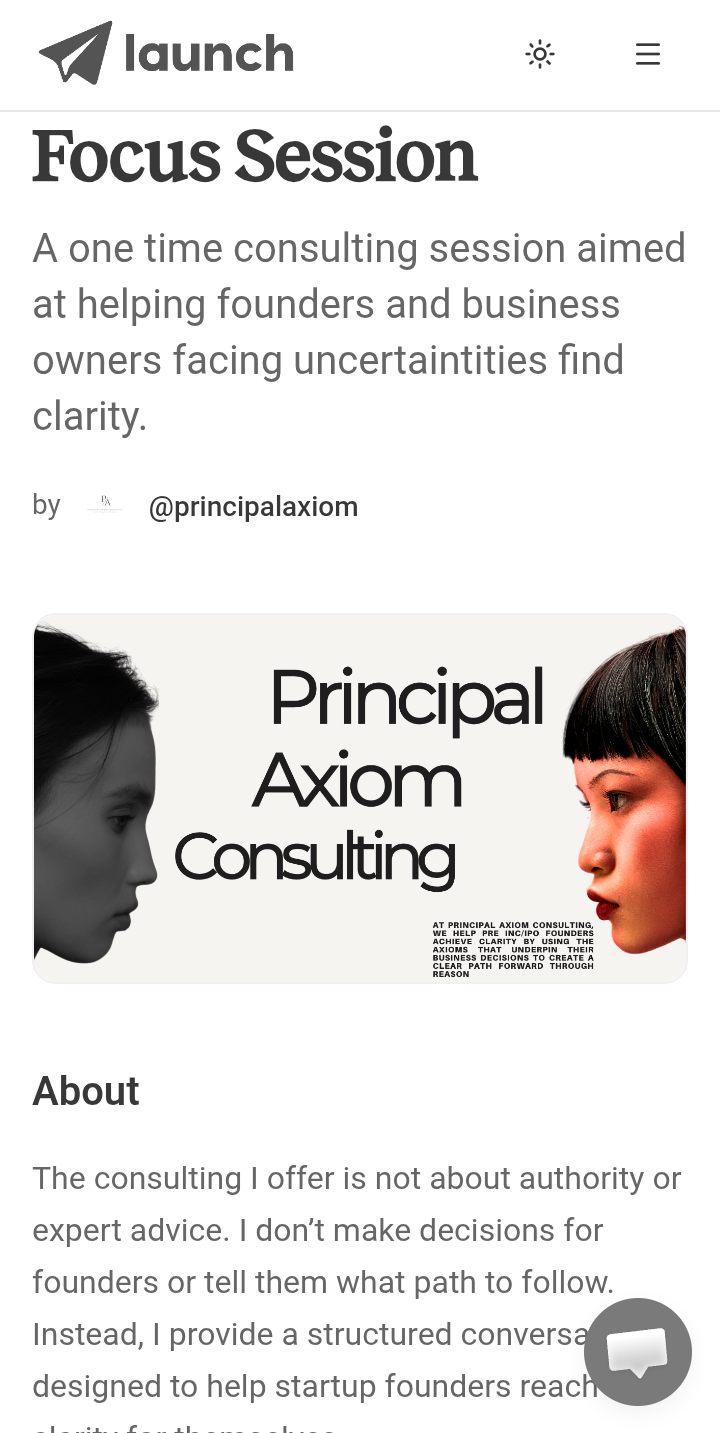 The consulting I offer is not about authority or expert advice. I don’t make decisions for founders or tell them what path to follow. Instead, I provide a structured conversation designed to help startup founders reach clarity for themselves. Drawing on my background in mathematics and philosophy, I’ve developed a way of breaking down complex, messy situations into their core assumptions, constraints, and trade-offs. Through this process, founders go from confusion and competing ideas, to clear understanding, knowing exactly what matters, and what their next steps are. The outcome of my consulting isn’t a prescribed solution, but genuine clarity: knowing your next direction and why it makes sense, without being told what to think.