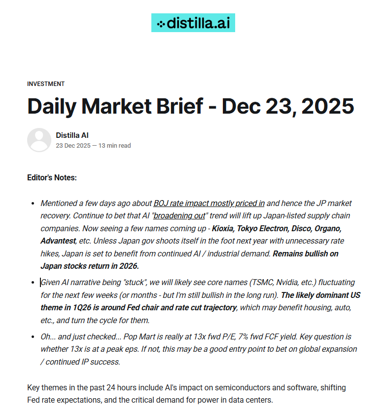 One anecdote from reader - Dec 6 letter called for Micron (40%+ after late Dec news on memory). https://www.distilla.ai/letters/tech-ripple-effects-asymmetric-impacts-investment-plays-dec-06-2025