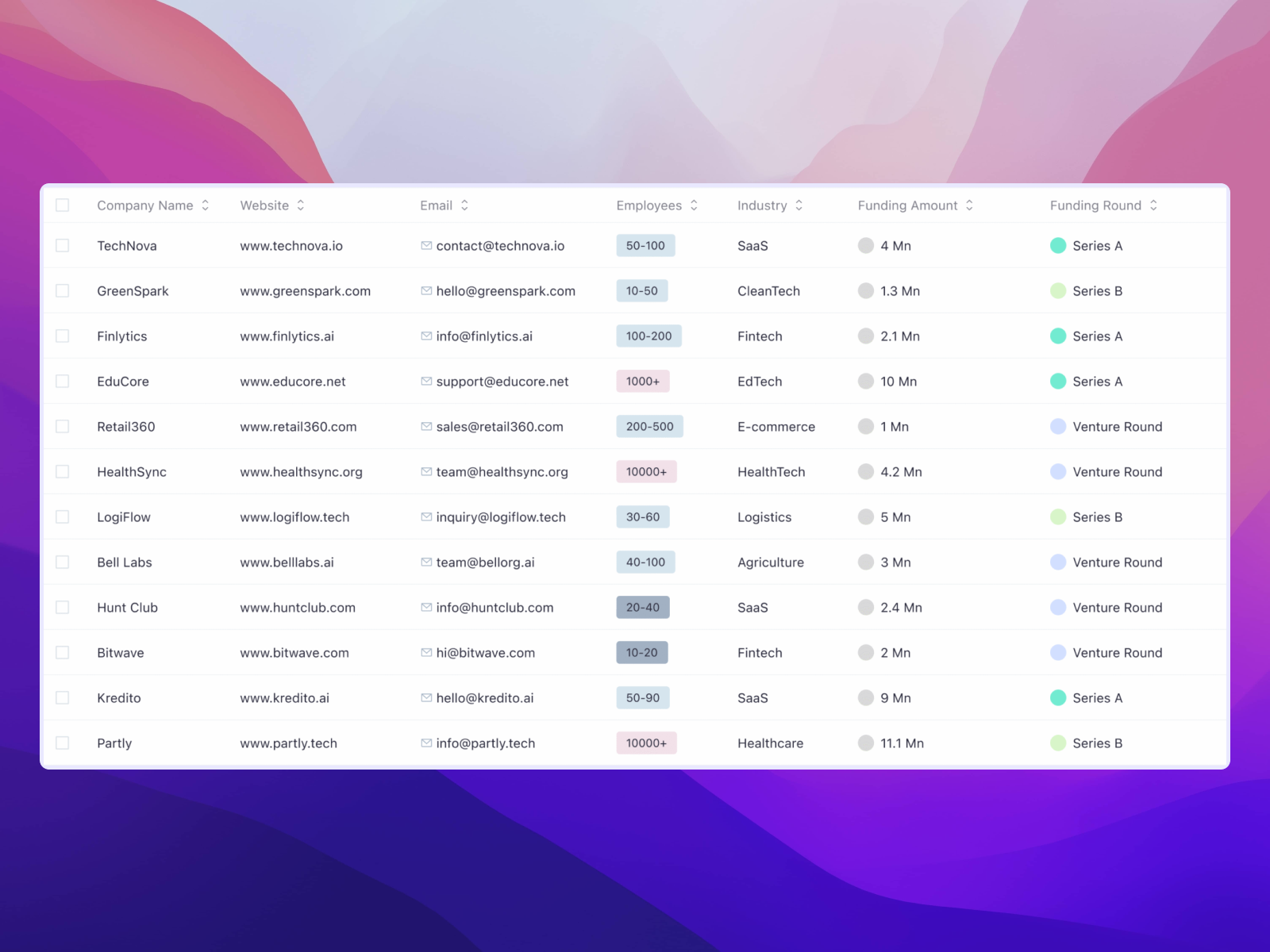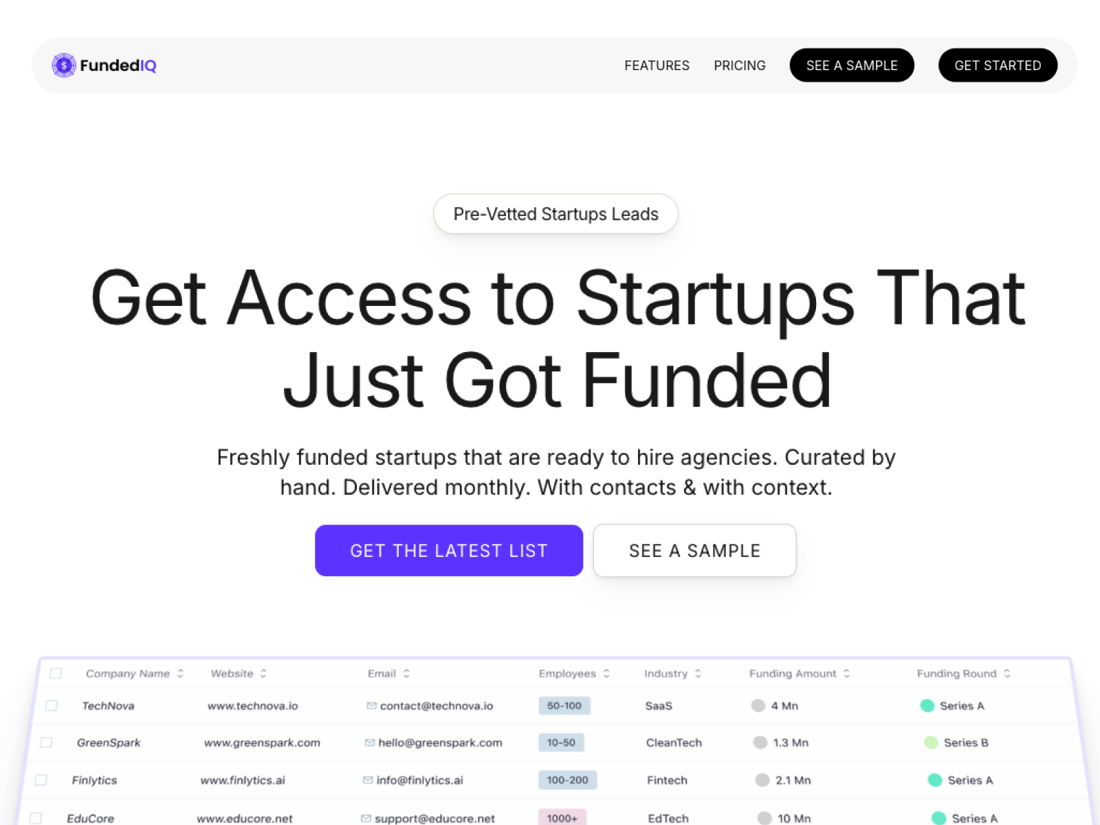 Database of recently funded startups