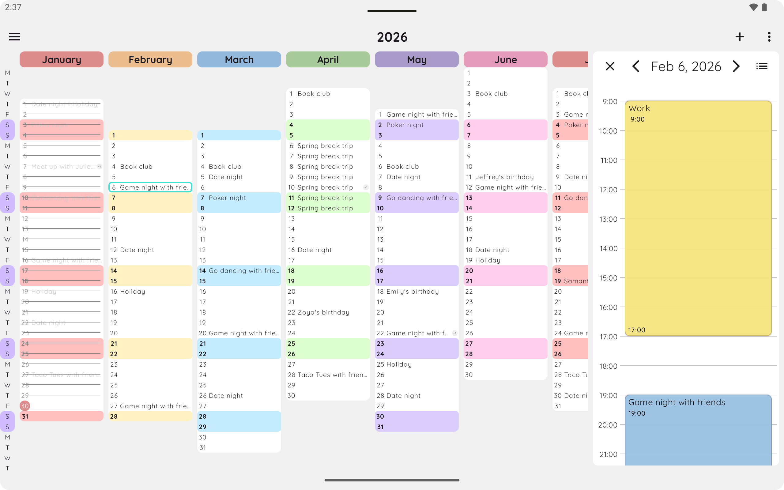 I use glance to plan my year, because in usual calendar apps only the monthly view is visible. Glance gives me a way better overview to plan weekends, holidays and events ahead.