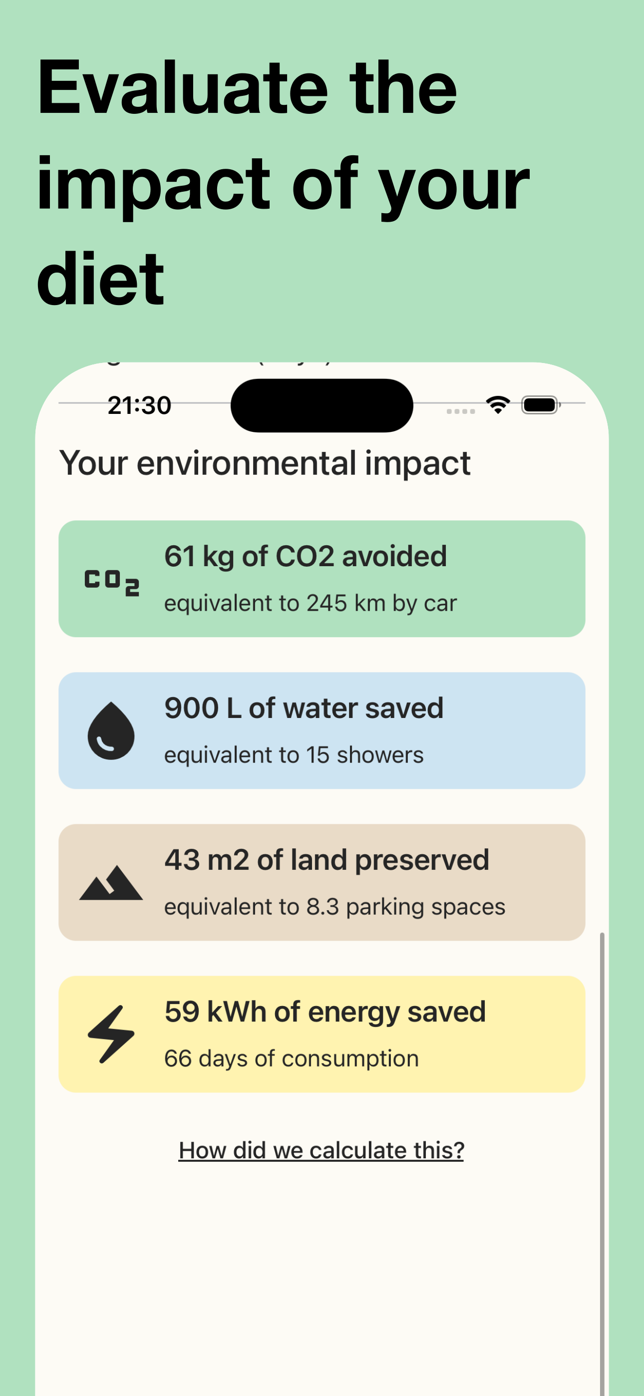 Changing your eating habits is hard. Food is routine, culture, comfort. It’s personal. But if you want to eat less meat, for your health or for the planet, you don’t have to figure it out alone. Goodbye Meat is built to help you take that step and stick with it. Track your meals, follow your progress, and see the real impact your choices have on the environment. Small changes, clearly measured, so you can see that what you do actually matters.