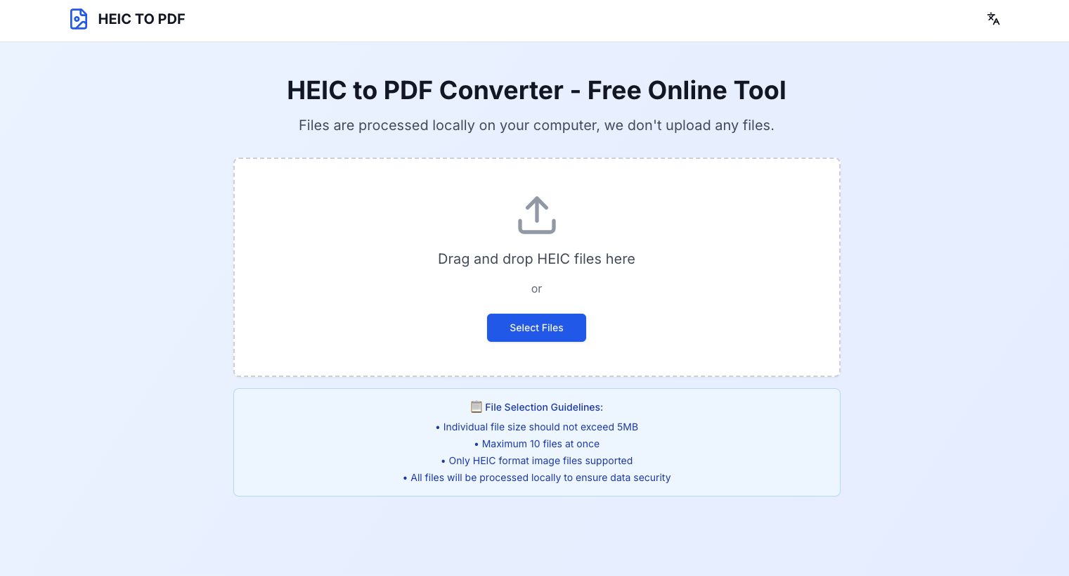 Convert HEIC/HEIF images to PDF instantly. No registration, no watermarks. Supports batch conversion. Perfect for iPhone photos. 100% free and secure.