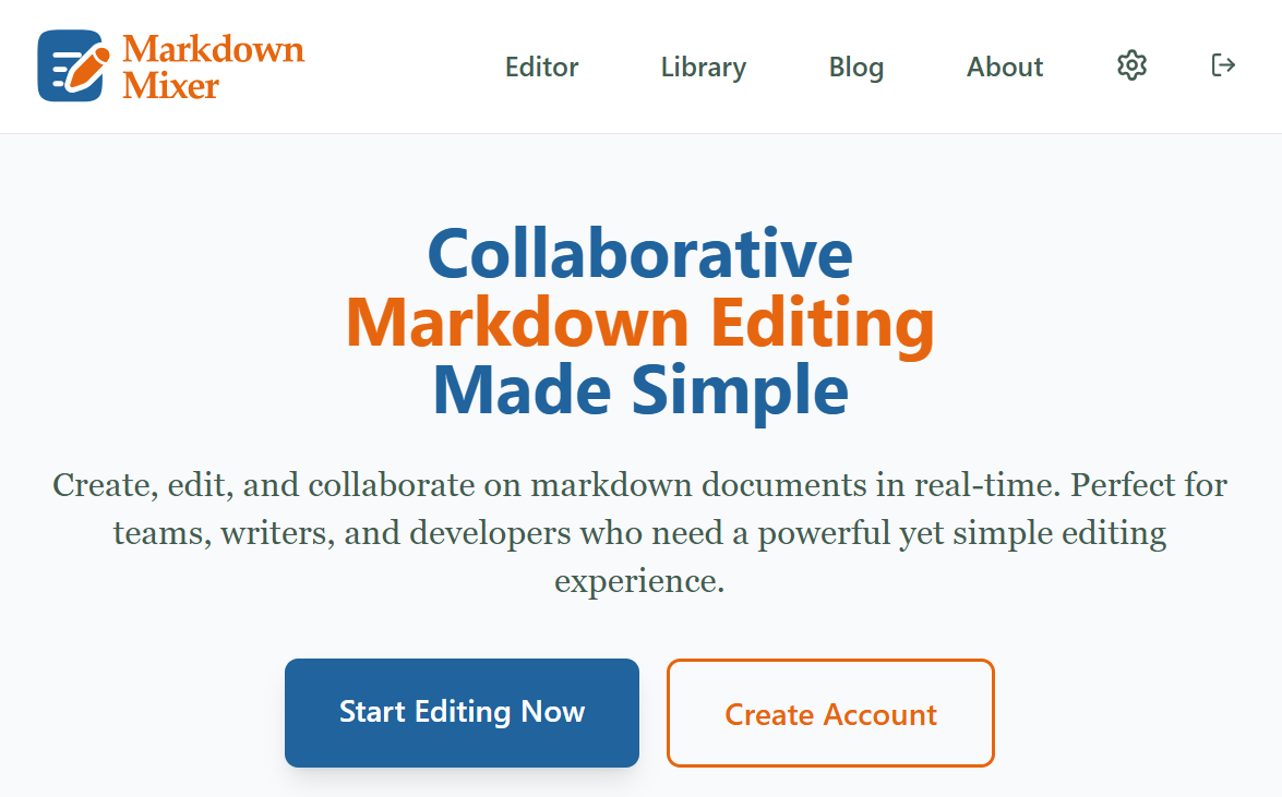 Markdown Mixer is a powerful, yet simple markdown editor designed to make writing and collaborating on markdown documents effortless. Whether you're a developer documenting code, a writer crafting content, or a team collaborating on documentation, Markdown Mixer provides the tools you need.