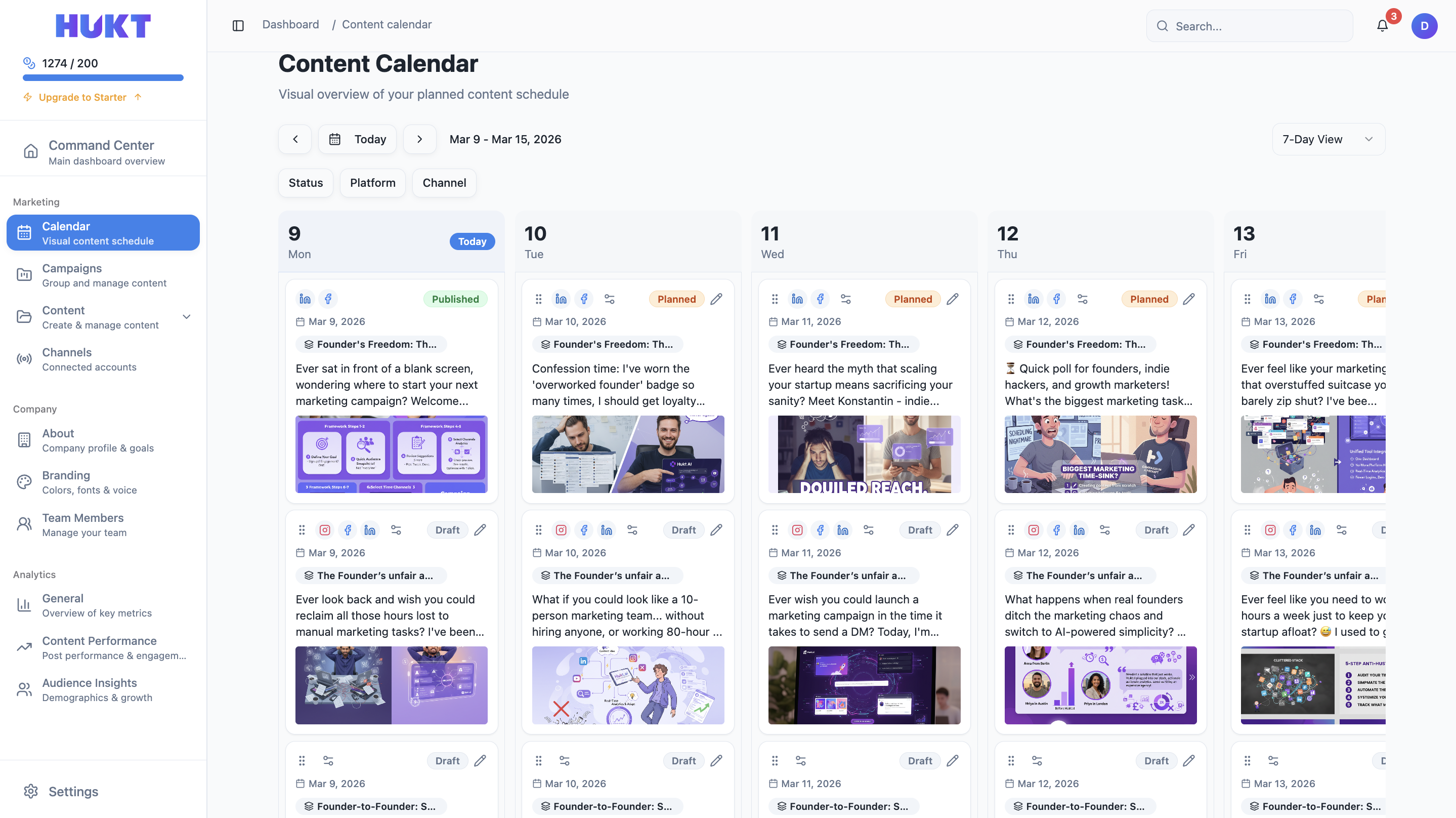 Definitely a great solution for startups when you’re Lately I’ve been managing my LinkedIn, and Instagram through HuktAI — makes things way easier.