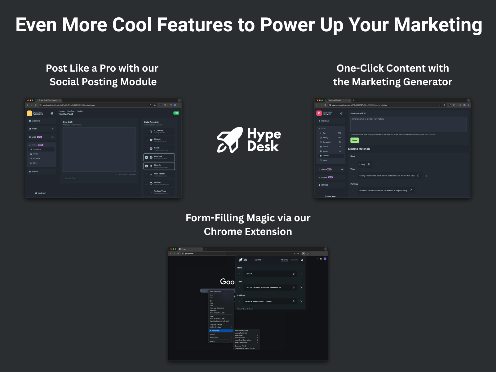 HypeDesk is your all-in-one, AI-powered marketing platform designed for indie developers and early-stage startups to grow with zero marketing budget. Instantly generate on-brand marketing content, pro