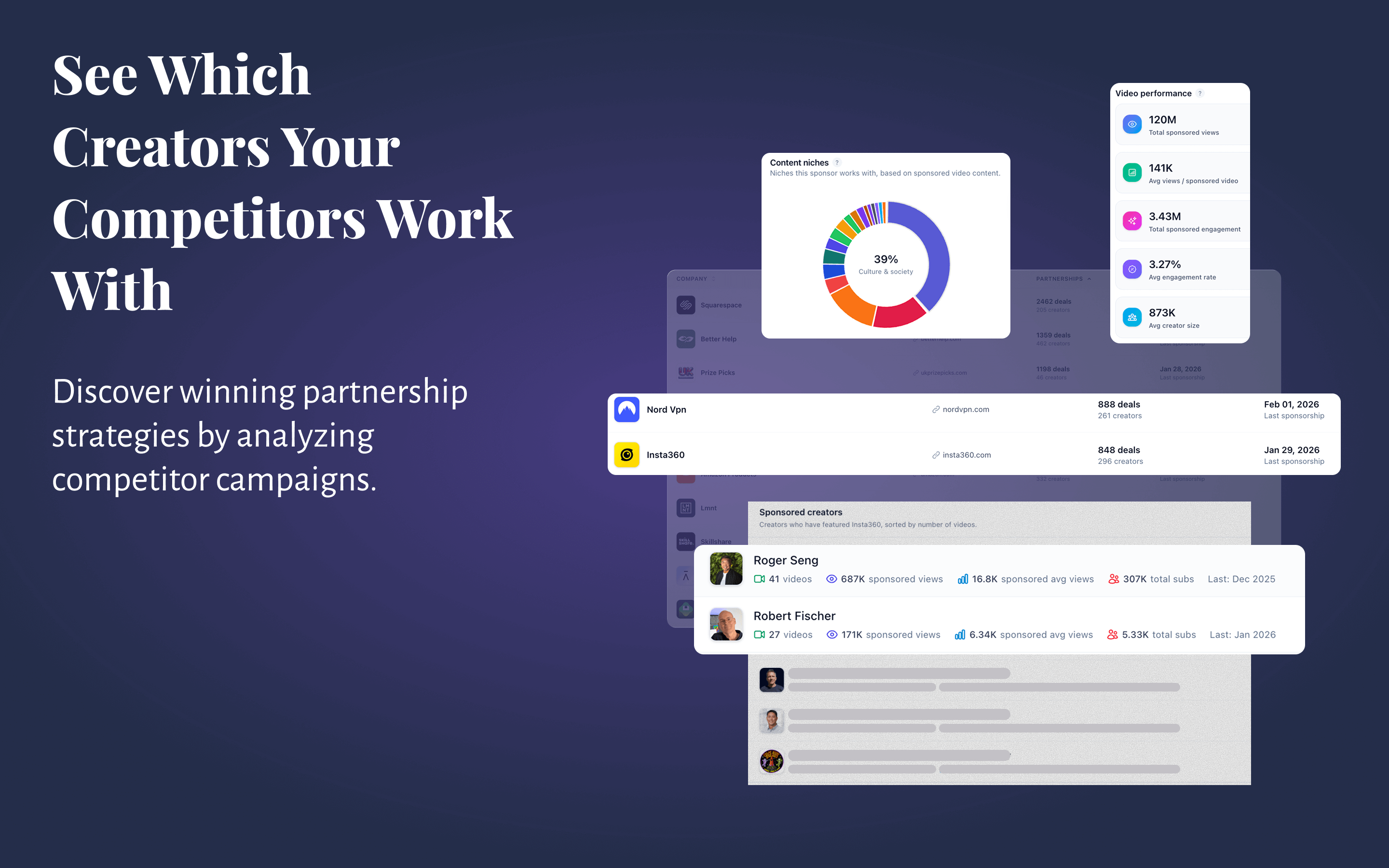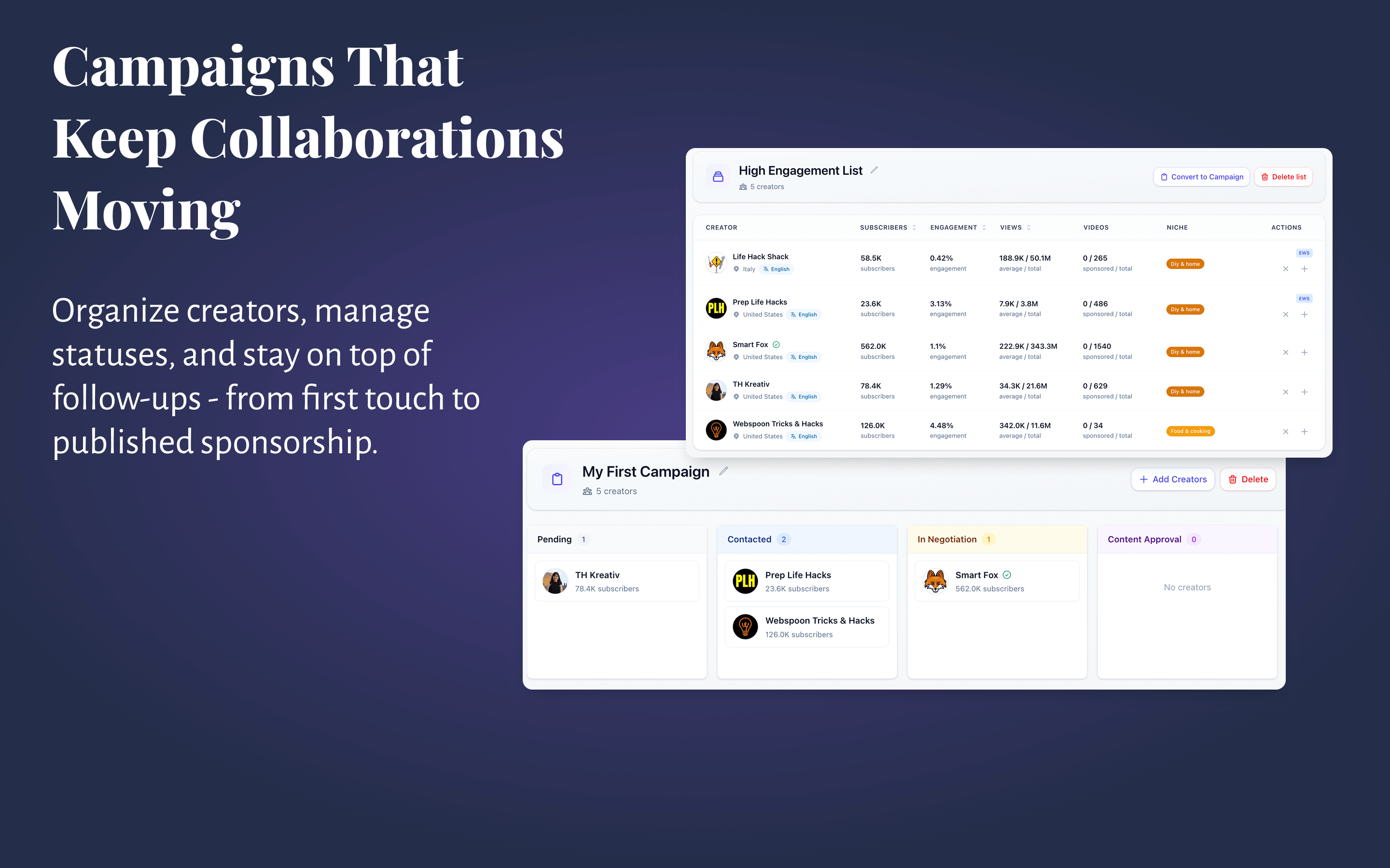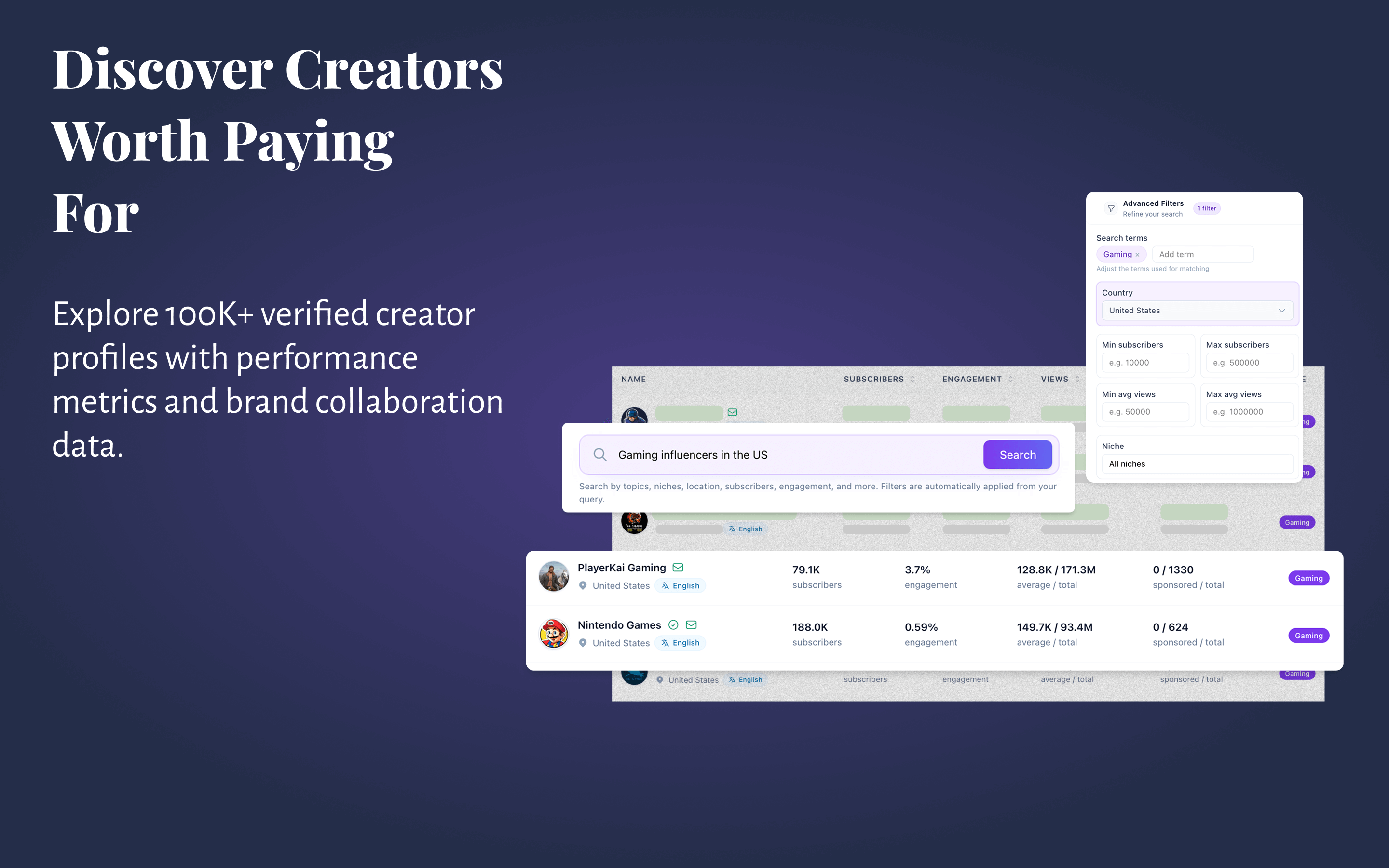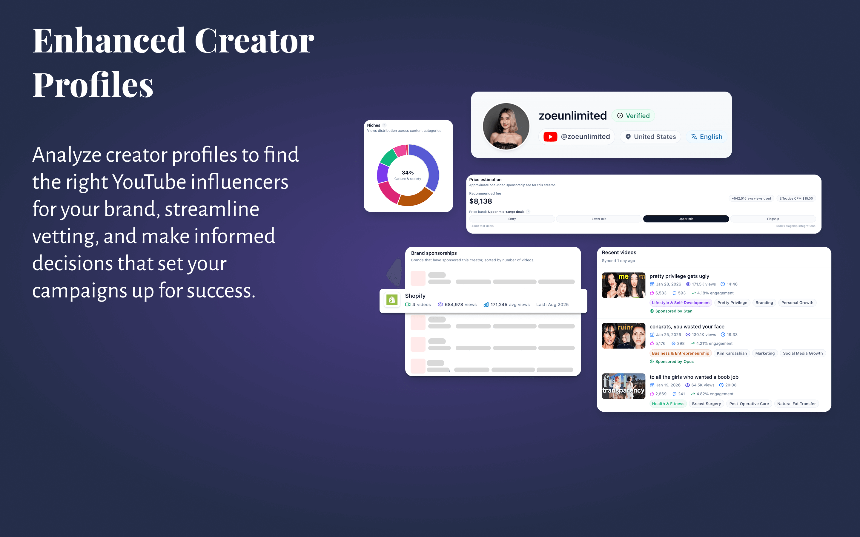 Influesque is a YouTube creator discovery and sponsorship intelligence platform for brands and agencies that care about outcomes. Search YouTube creators by niche and keywords, then validate sponsorship fit using sponsorship patterns and performance signals. You can quickly understand who sponsors a creator, how consistent collaborations are, and whether the creator’s audience and sponsor mix match your category. This helps you avoid “looks good on paper” creators and focus on partners with realistic commercial alignment. As you discover and vet the right talents, save creators into lists (grouped by market, product line, or theme). When you’re ready to act, use campaigns to keep everything organised and track your pipeline from discovery to collaboration. No more scattered tabs, ad-hoc notes, and messy spreadsheets. Influesque is built for teams that want a repeatable workflow: faster sourcing, cleaner decisions, and more profitable YouTube partnerships.