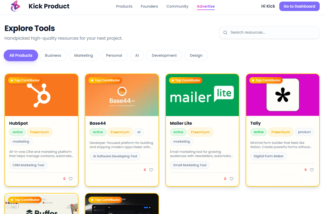 Kick Product allows you to launch your SaaS product in minutes. You can use this platform to gain instant visibility for your new projects and streamline your launch process. It helps you focus on bui