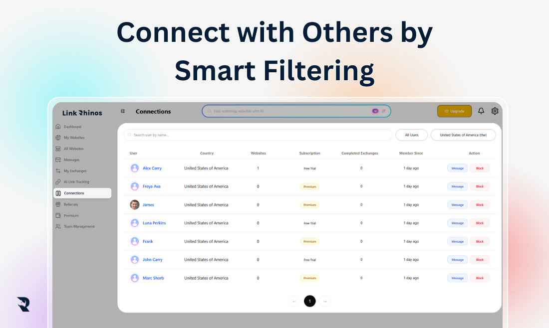 Link Rhinos is an AI-powered link exchange platform and backlink exchange network designed to help you improve your SEO rankings. You can grow your online presence using a network that facilitates safe, high-quality, and reciprocal backlinks tailored for website owners, bloggers, and businesses. The platform automates the process of finding relevant partners to ensure your link-building strategy is both effective and efficient.