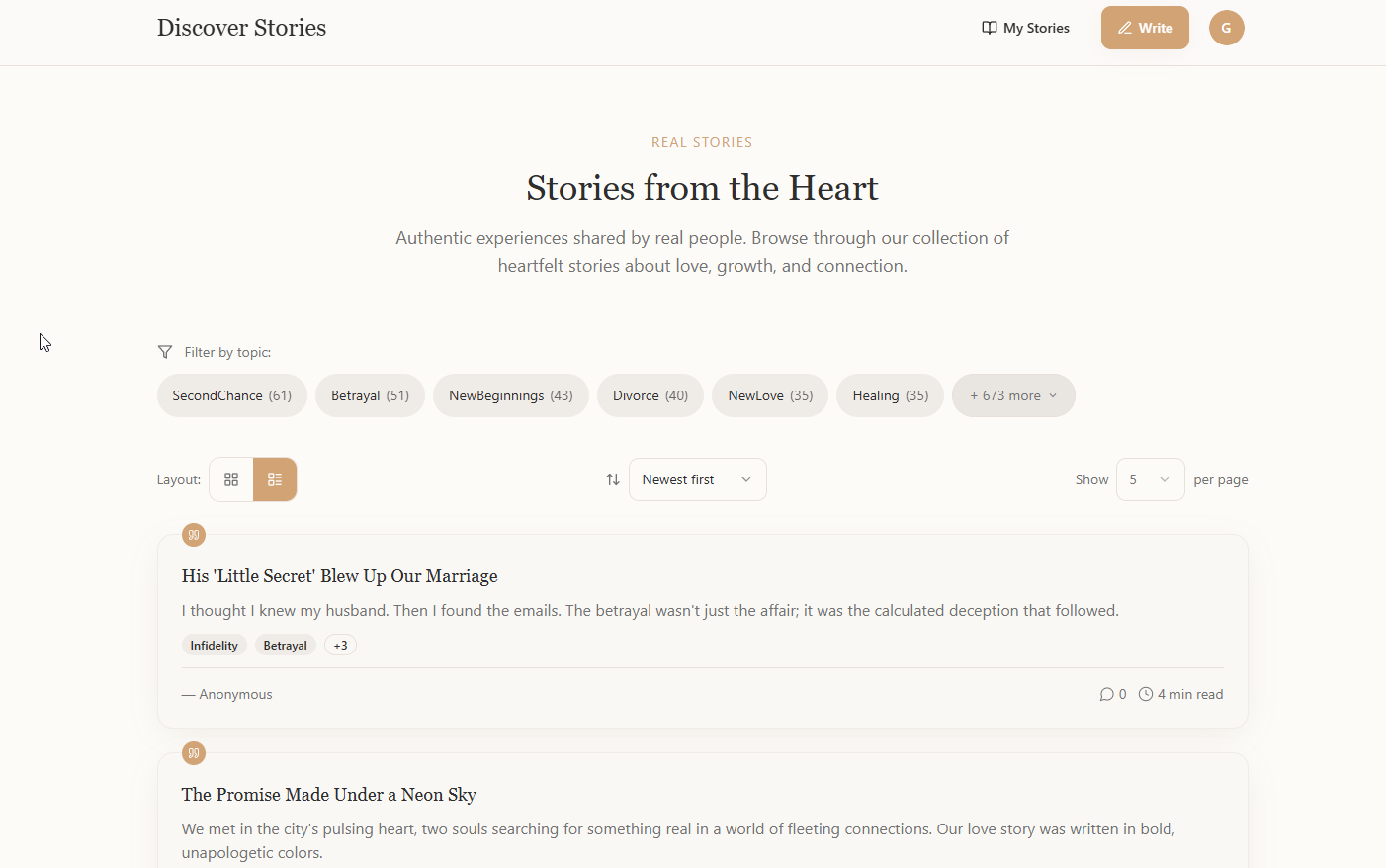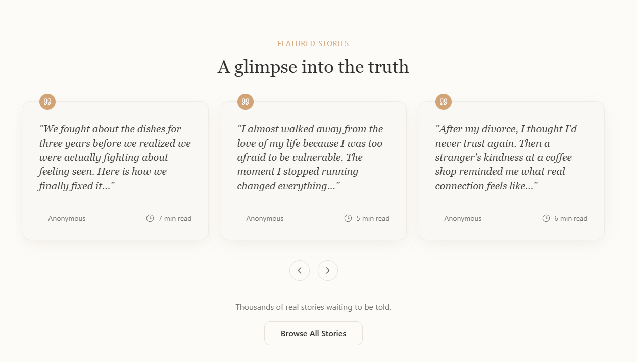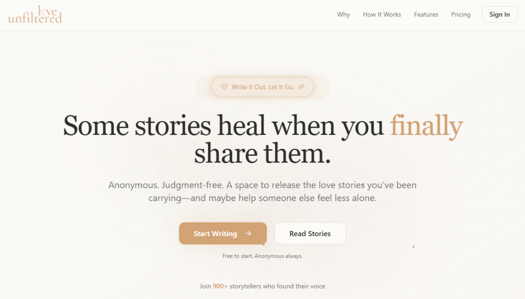 Love Unfiltered provides a dedicated platform where you can share and read raw, anonymous love stories. This community-driven space allows you to explore real heartbreak, dating confessions, and authentic relationship lessons from people just like you. By offering a space with no filters and no judgment, the site helps you discover the truth about modern romance and learn from the experiences of others in an honest, open environment.