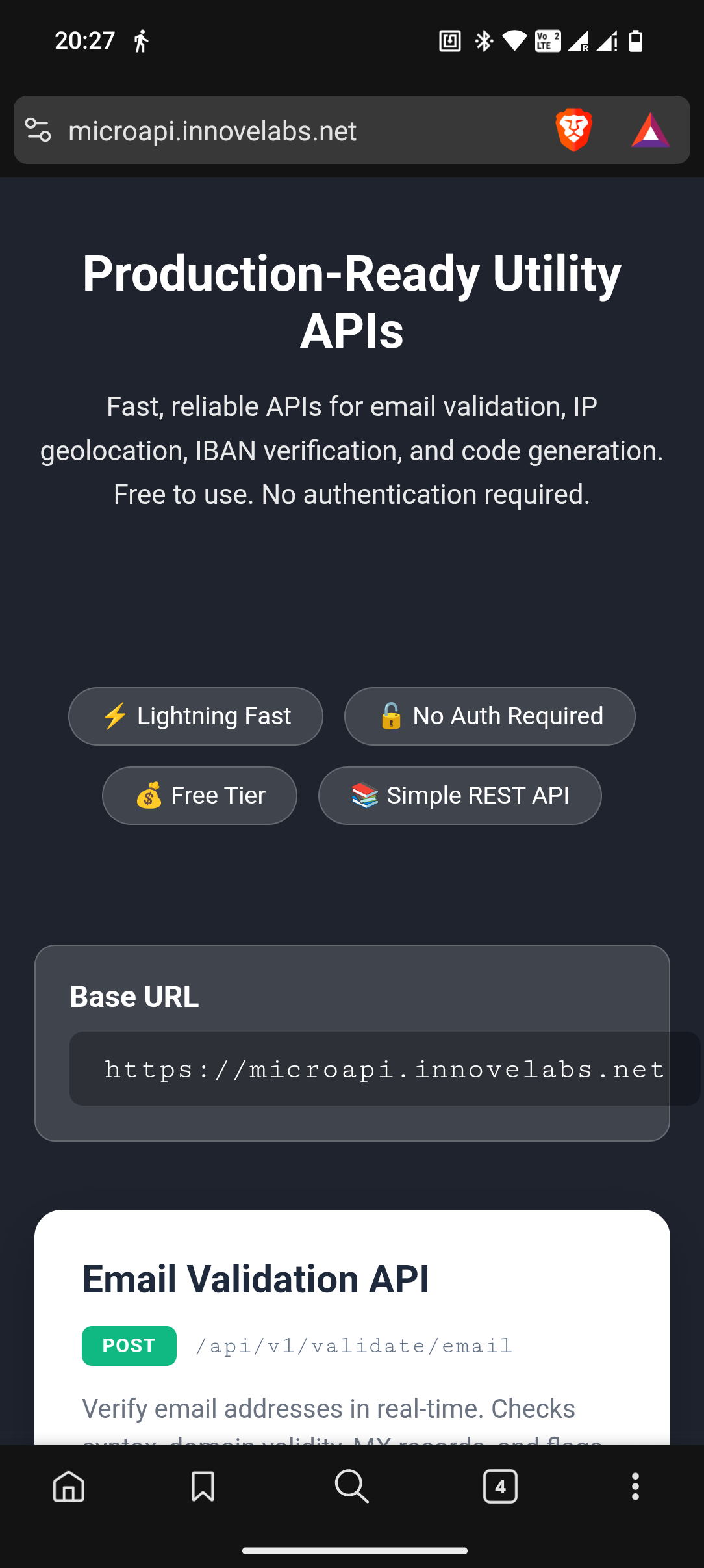 You can access a collection of free REST APIs for email validation, IP geolocation, QR code generation, and barcode generation. This developer-focused platform provides a simple JSON interface with no API key required, making it easy to integrate essential utilities into your applications quickly and efficiently.