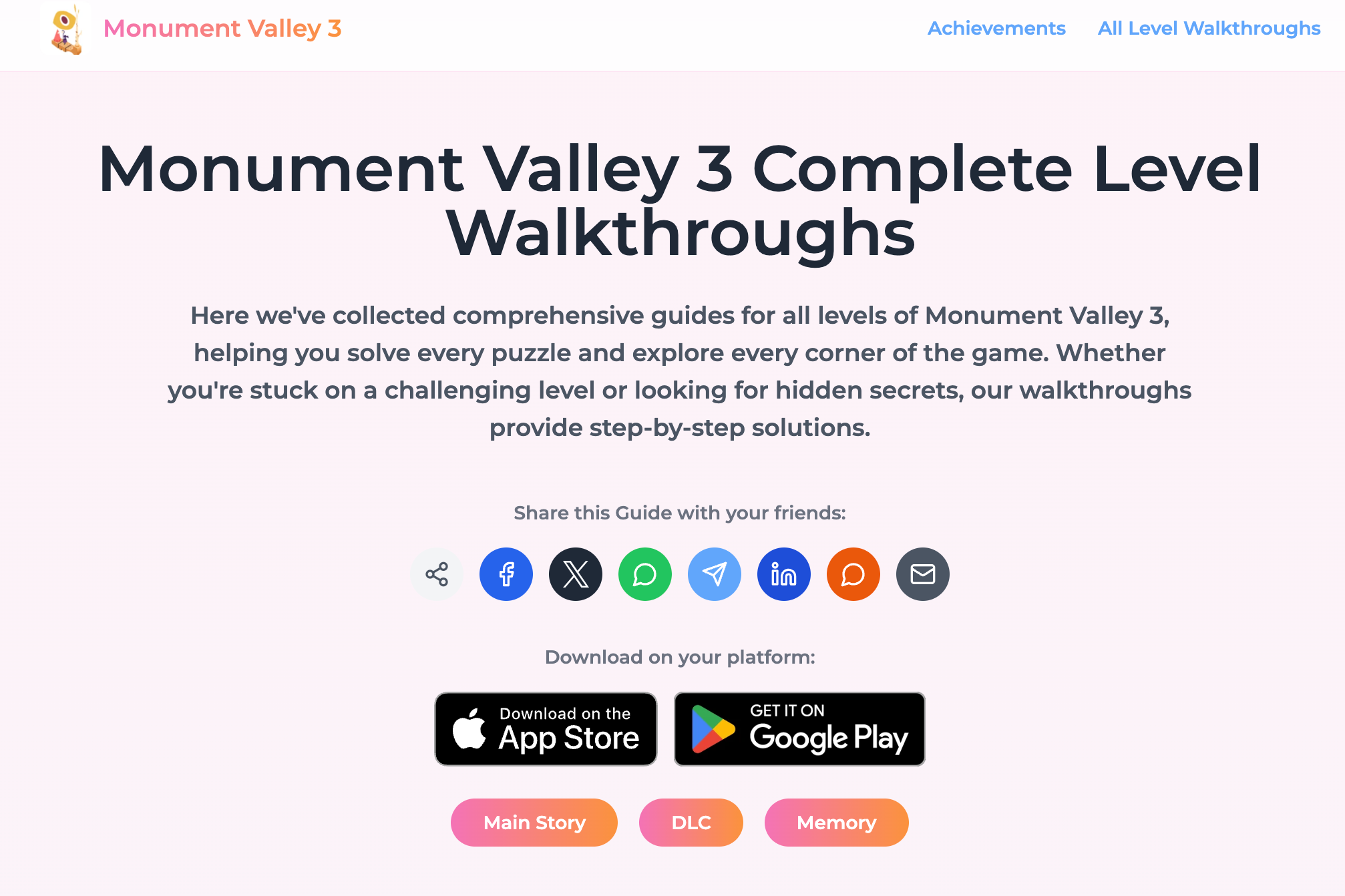 If you’re also playing Monument Valley 3 ,this guide site is absolutely worth trying. It clearly breaks down all chapters, achievements, and hidden content, making it much easier to progress