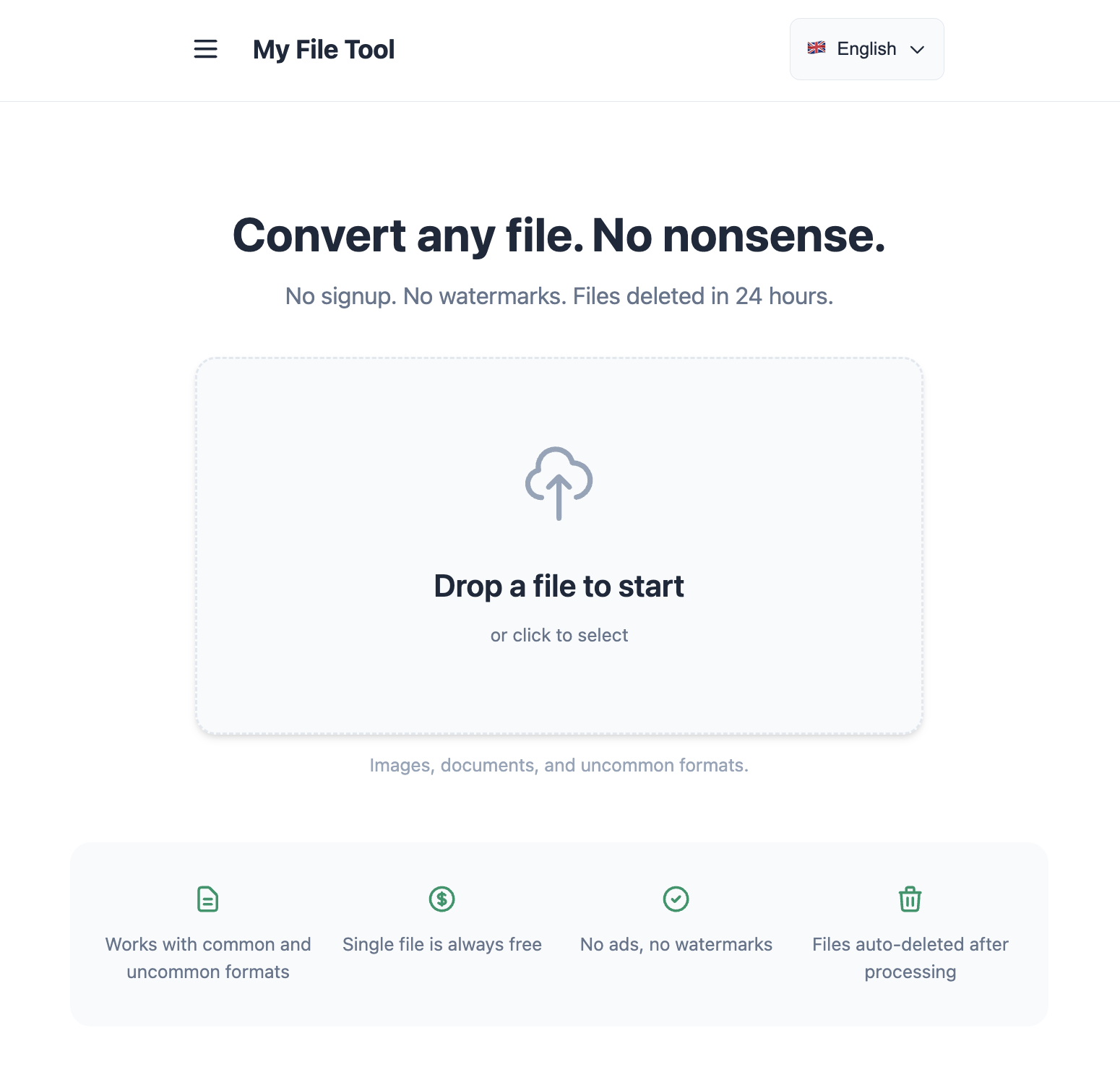 You can convert, compress, and transform files online with ease. My File Tool provides a safe environment for your digital assets, offering its services for free on single files. You do not need to sign up or create an account to start using the platform, and your output remains professional as there are no watermarks applied to your documents or media. Whether you need to change a file format or reduce file size, this tool helps you manage your files efficiently from any browser.