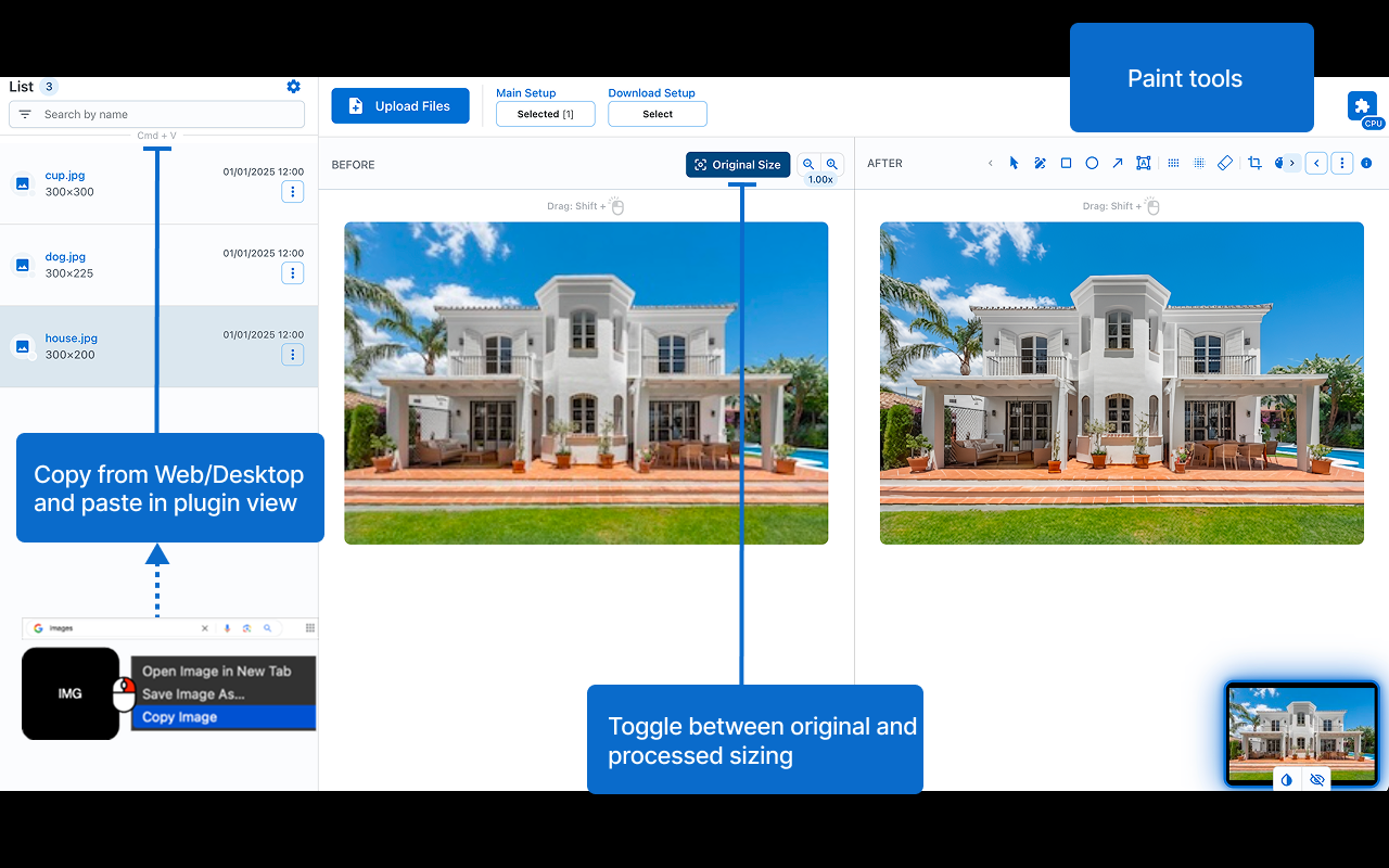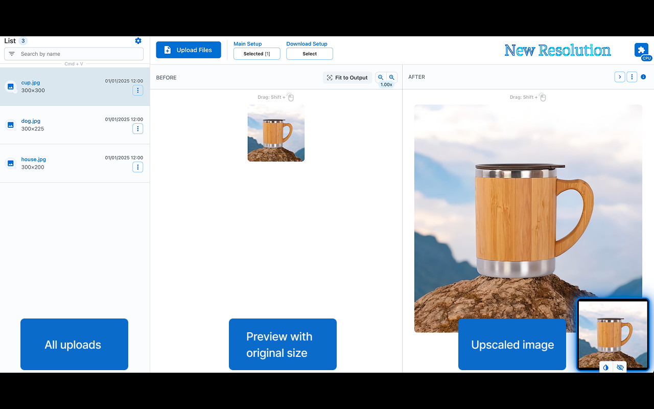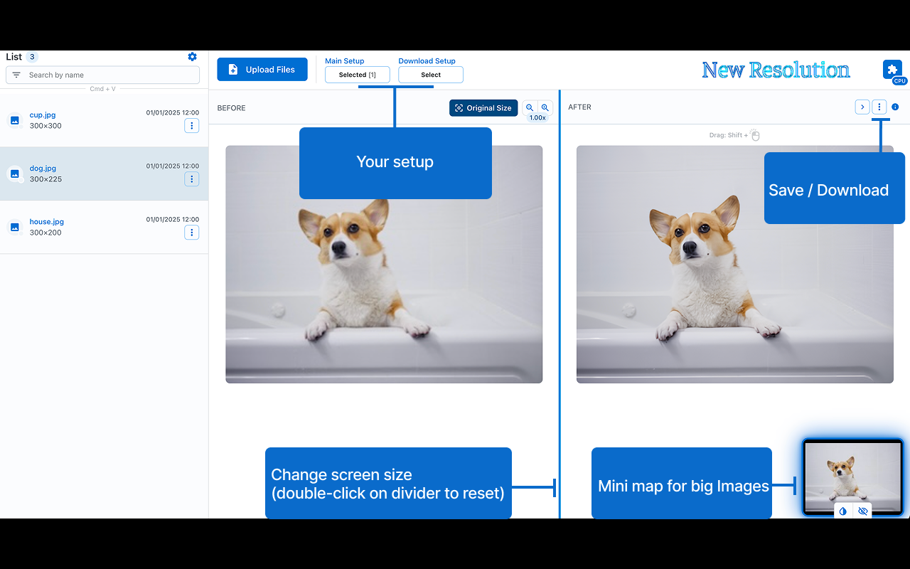Upscale your photos, anime, and cartoons - ideal for small, clean images (e.g., 300×300). Bigger dims take longer because quality comes first. For slow or warm devices, enable lighter mode in settings. Features: • 🎯 Precision: delivers highly accurate results. • 🔒 Offline Functionality: operates entirely offline, ensuring your data stays private. • 🎨 Edit: paint tools. • ✨ Extra Options: output size control, watermarking (image/signature), metadata handling, and format selection. Shortcuts: • Paste files from your clipboard for processing: Ctrl/Cmd + V • Copy the modified selection to your clipboard: Ctrl/Cmd + Shift + C Note: compatibility may vary across devices 😢.