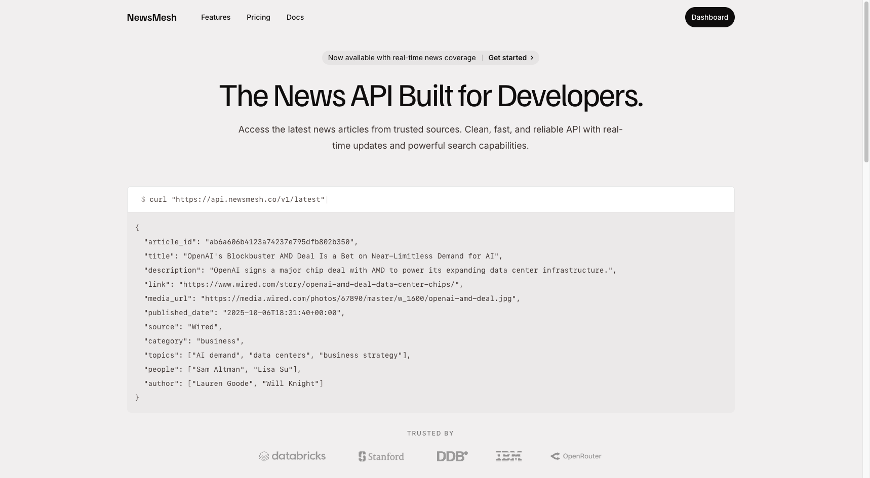 NewsMesh provides a robust API designed specifically for developers who want to build powerful news applications. You can access real-time news updates, track trending articles, and search across more