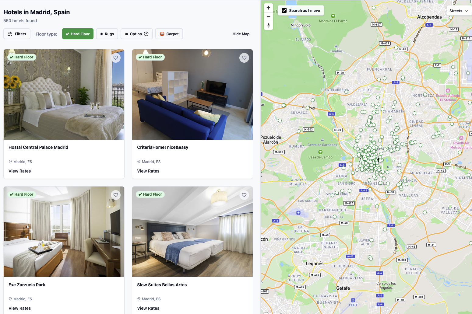 No Carpet Stays helps you find verified carpet-free hotel rooms for cleaner, allergy-friendly travel. You can browse a curated selection of accommodations that prioritize hard flooring over carpets, helping you avoid dust mites and allergens during your stay. This platform is designed for travelers who prefer a more hygienic and modern lodging experience.