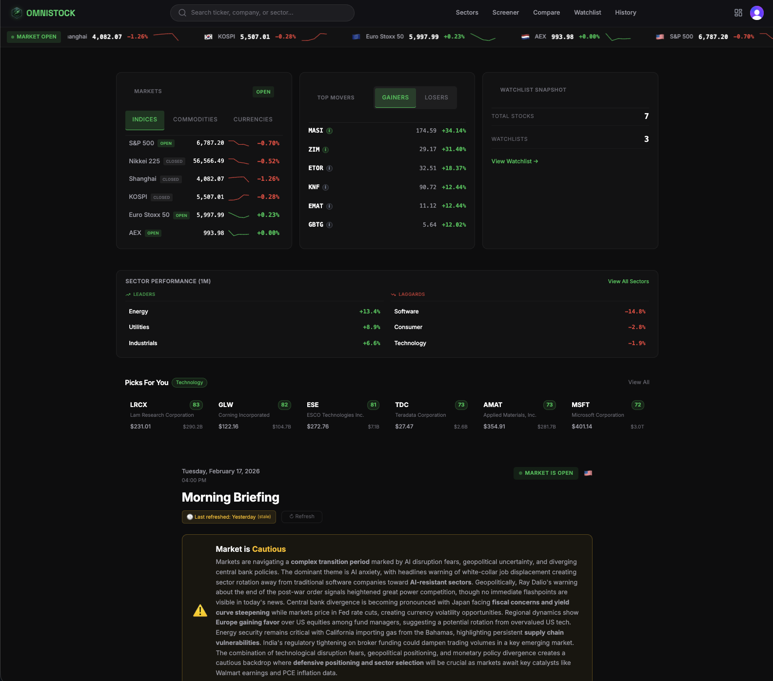 What if your stock research took minutes instead of hours? OmniStock gives you AI analysis on 1,500+ stocks, watchlists & daily briefings — for free 👇