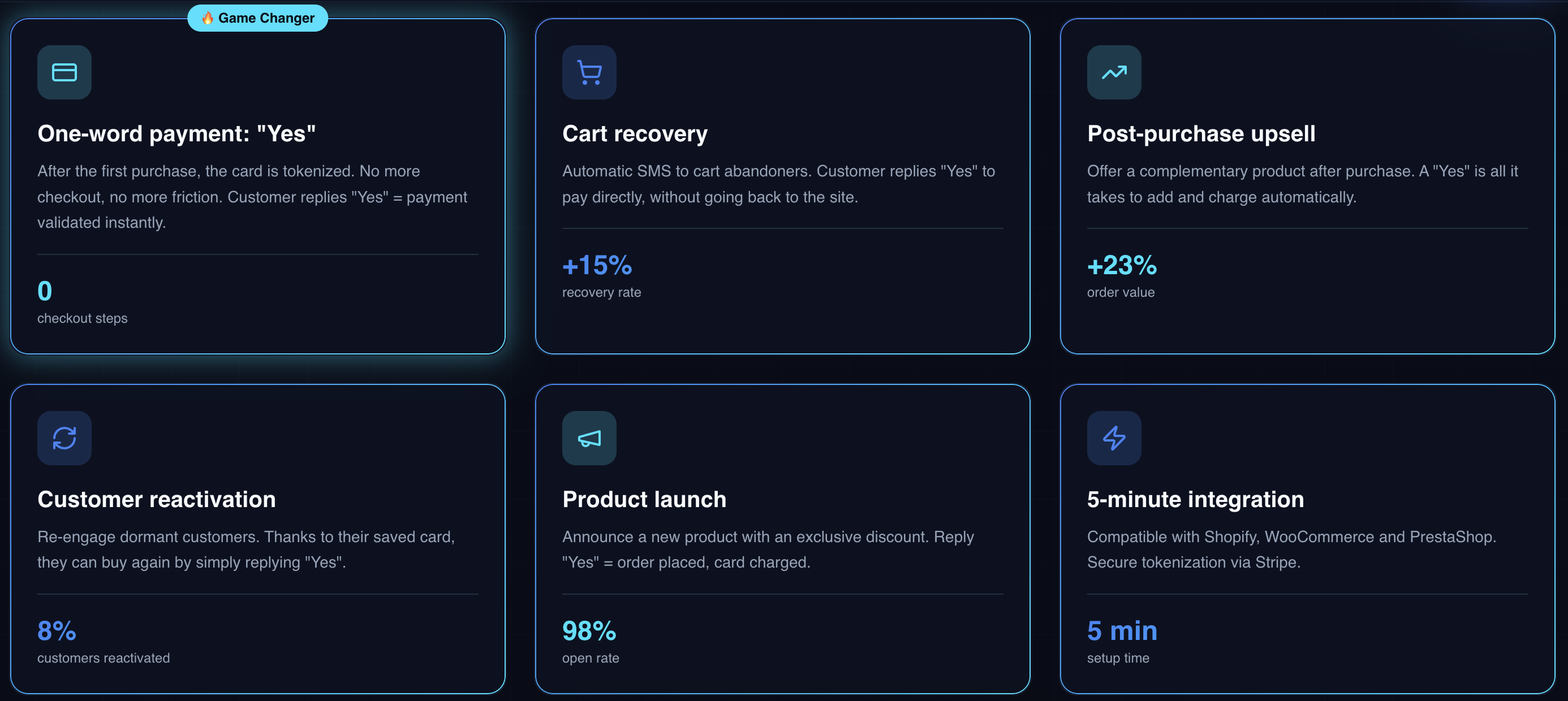 OuiPay by Lenbox helps you increase your revenue by up to 35% through targeted SMS campaigns. You can effectively recover abandoned carts, implement intelligent upselling strategies, and re-engage dor