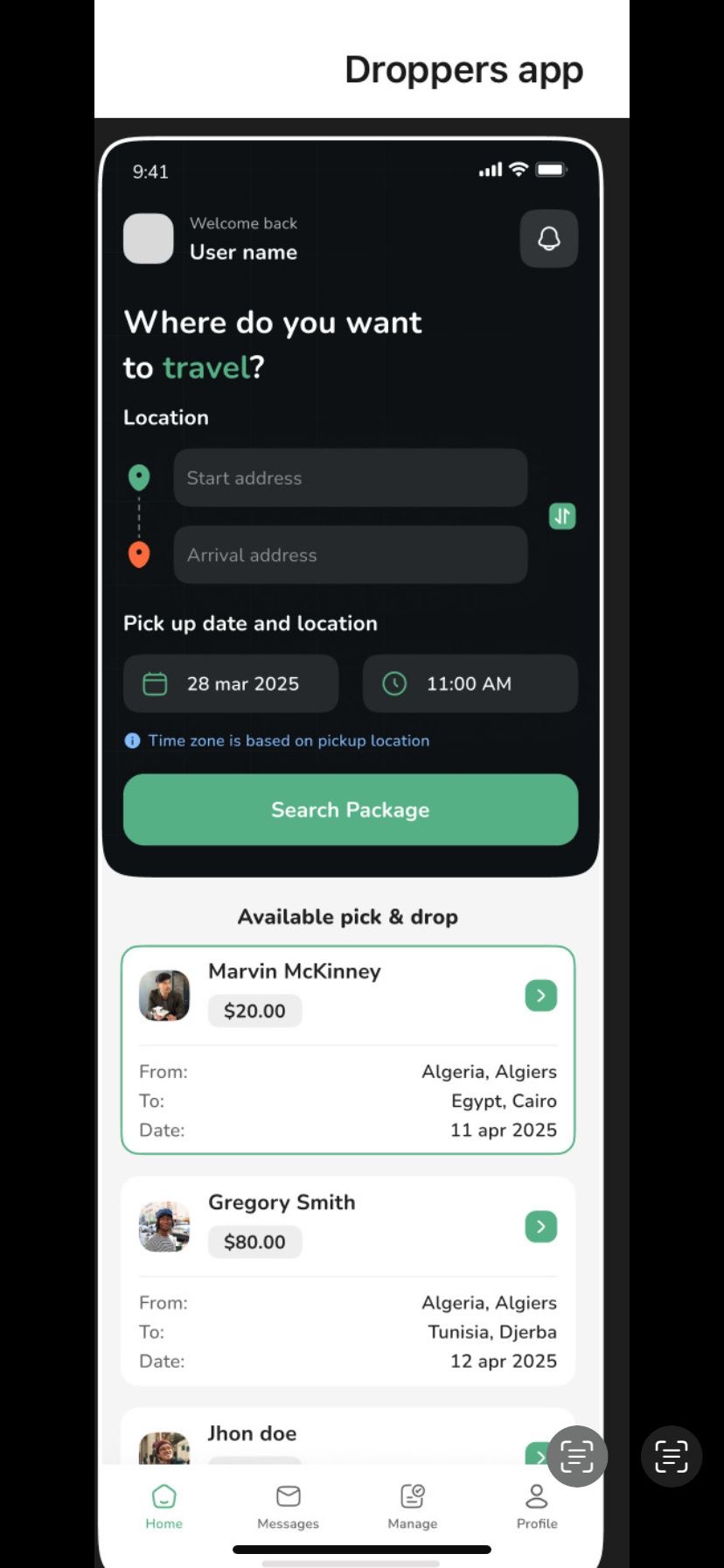 Move packages quickly and easily from A to B. Get packages where they need to go faster and smarter. We help package/parcel senders move their packages or items with the best combination of travellers and freelancers. Fast delivery time and pay according to your budget. Make an offer to the droppers/riders and someone will get the job done. Smarter planning, better prices, faster transfers and your package is at your doorstep. We help package senders and companies move their packages faster. Work directly with your delivery man. Smartly and quickly. You make an offer to travellers and freelancers to pick up and drop up your package at your desired location. The best combination of speed, price and customer experience. In the platform you can follow your runs and see the current status – from start to delivery.