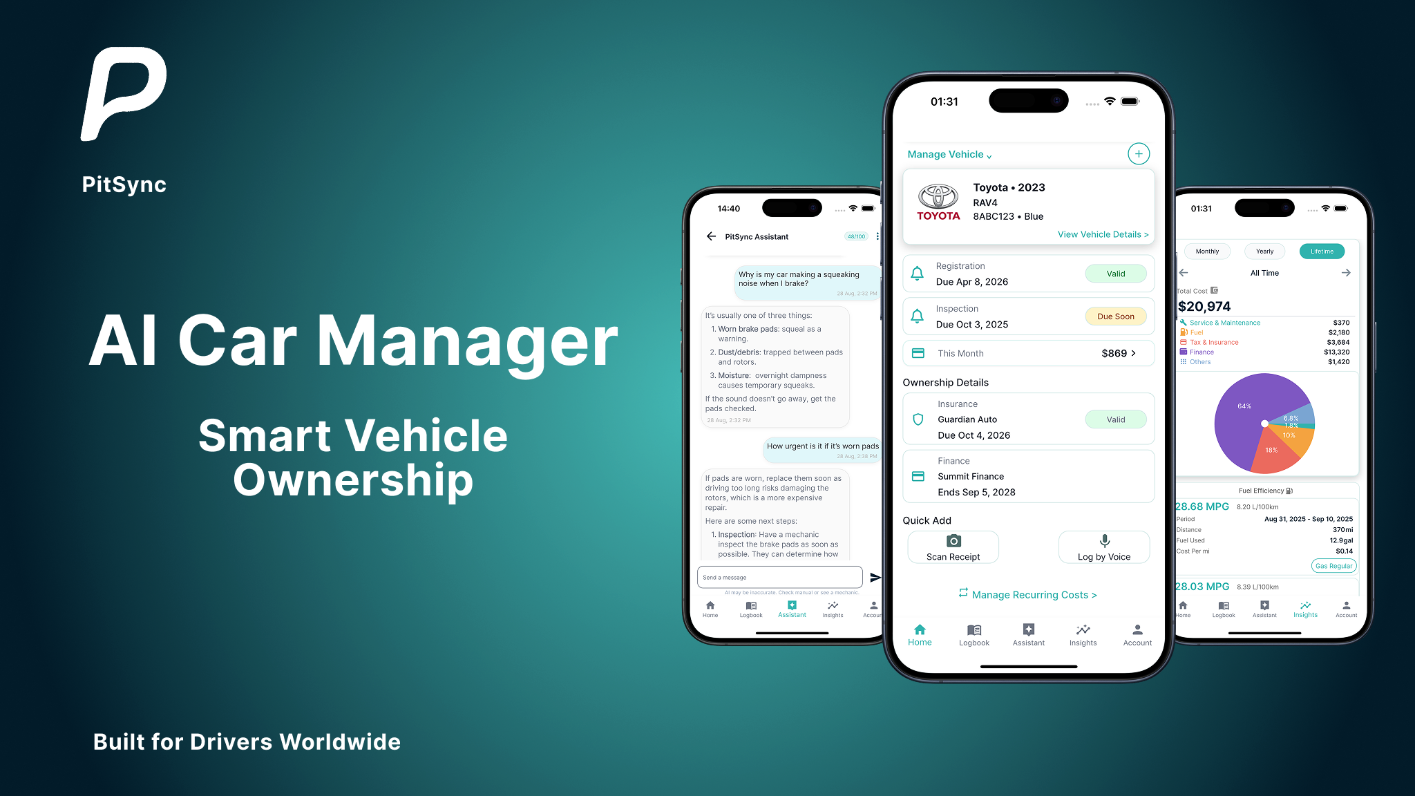 PitSync is an AI-powered vehicle management app that simplifies car ownership. It tracks all your vehicle costs, renewals, and records in one place - from MOT, tax, and insurance to fuel, service, and finance. How it works: - Add your vehicle once. - PitSync automatically fetches MOT, tax, and model info. - Log expenses, scan receipts with AI, and get smart reminders before renewals. - View monthly or yearly cost insights. Why it matters: PitSync saves time, prevents missed renewals, and shows the true cost of vehicle ownership - all powered by intelligent automation.