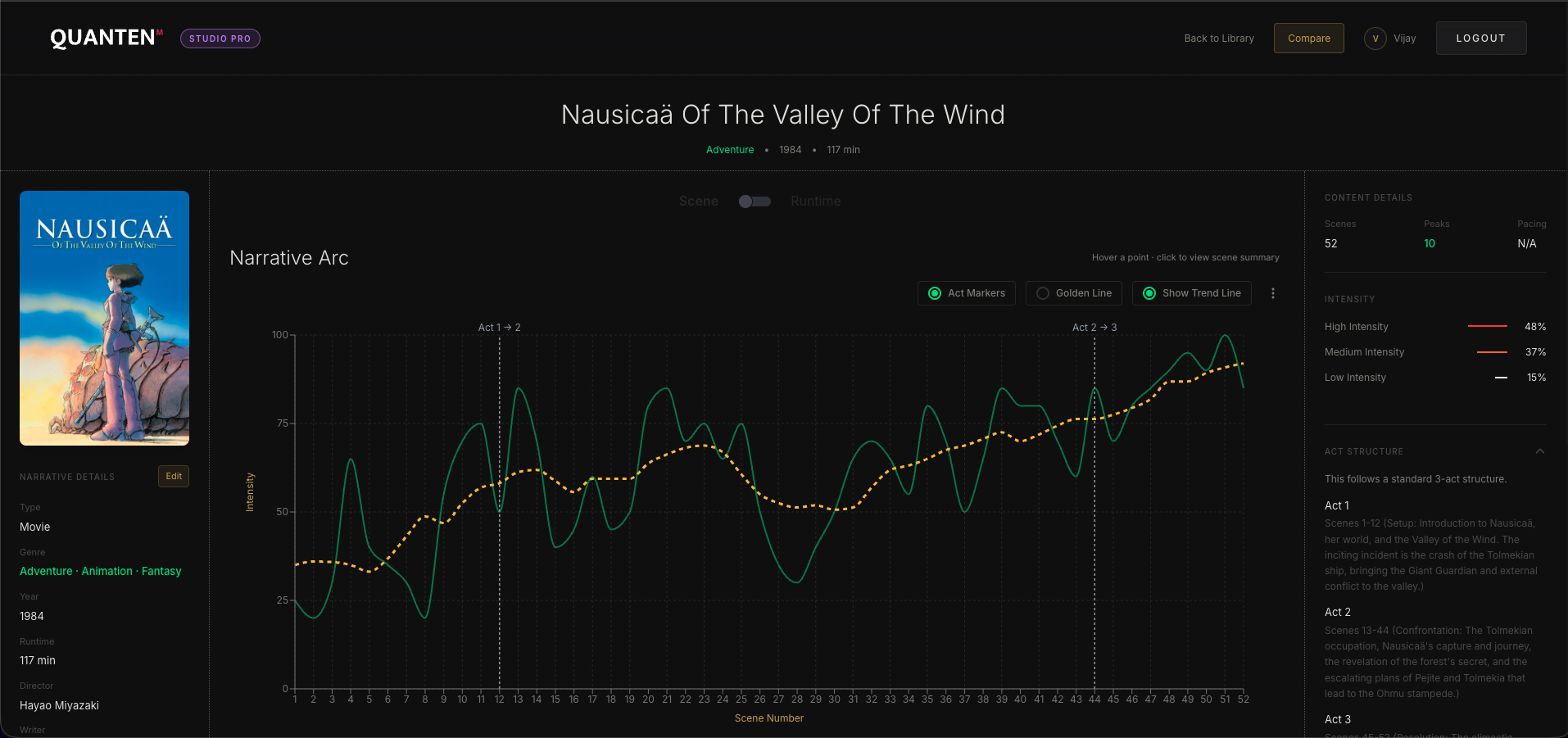 Quanten Arc allows you to unlock the art of story by mapping narrative intensity scene by scene. You can benchmark your screenplay against more than 100 produced films to gain deep insights into your work. This tool helps you understand story structure, plot pacing, and act shapes before you begin shooting. By using these analytics, you can refine your storytelling and ensure your narrative resonates effectively with your audience.