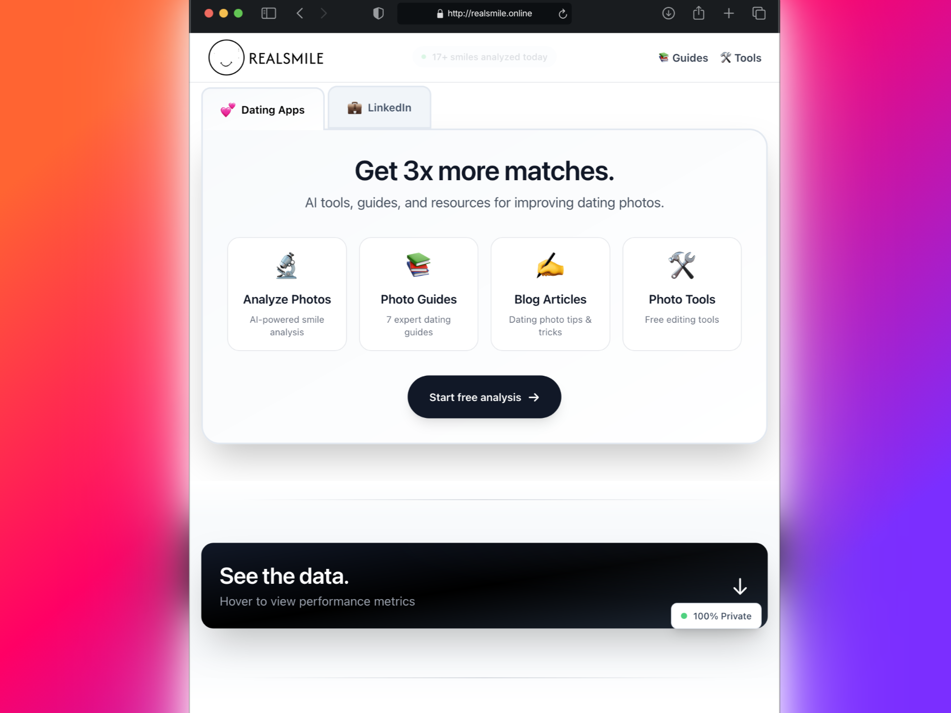 RealSmile provides you with a comprehensive suite of AI tools, expert guides, and curated resources designed to enhance your visual presence. Whether you are looking to improve your dating profiles or your professional imagery, these resources prioritize authenticity to help you make a better impression. You can access specialized advice and technology focused on photo improvement to ensure your digital identity looks its best.