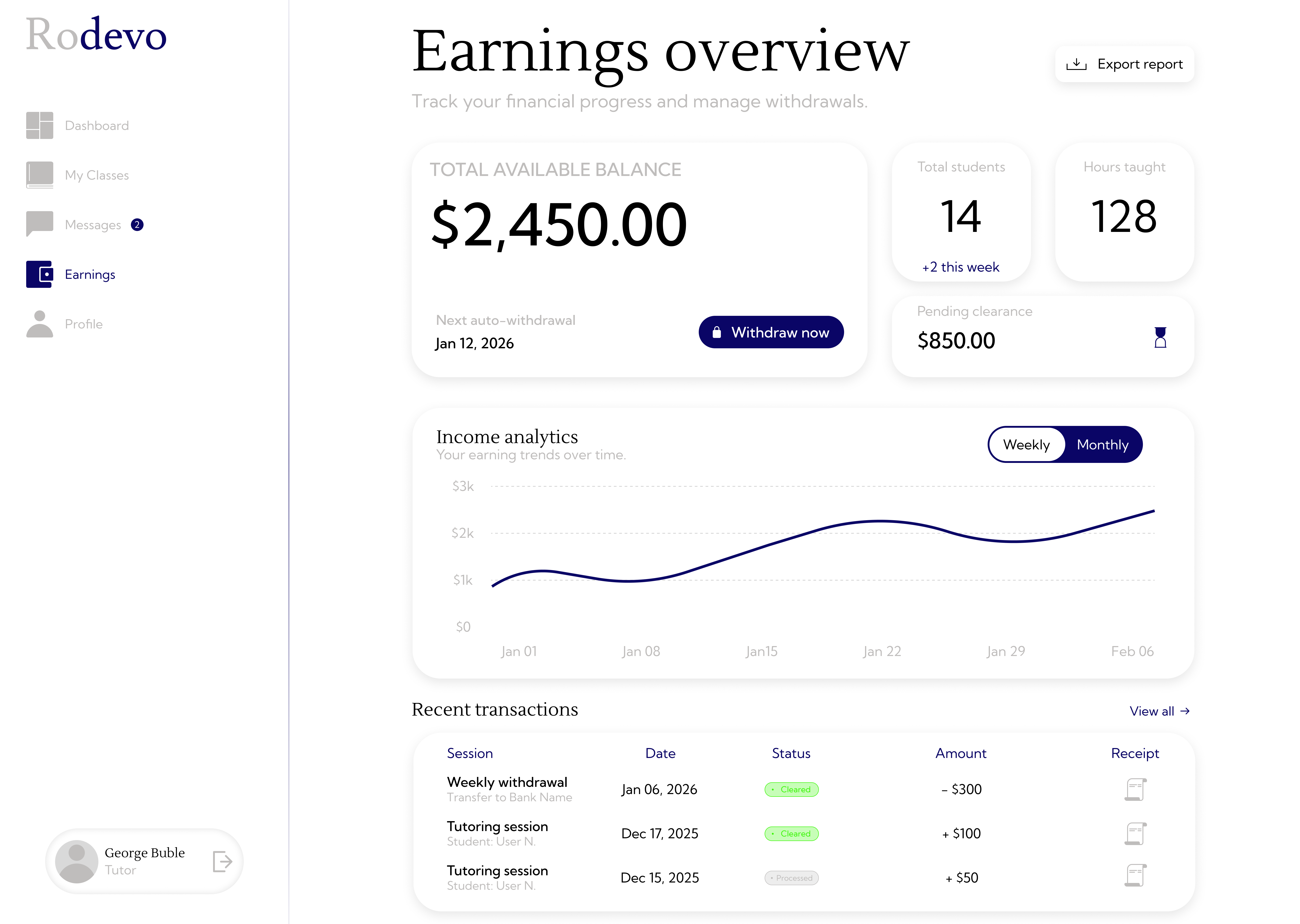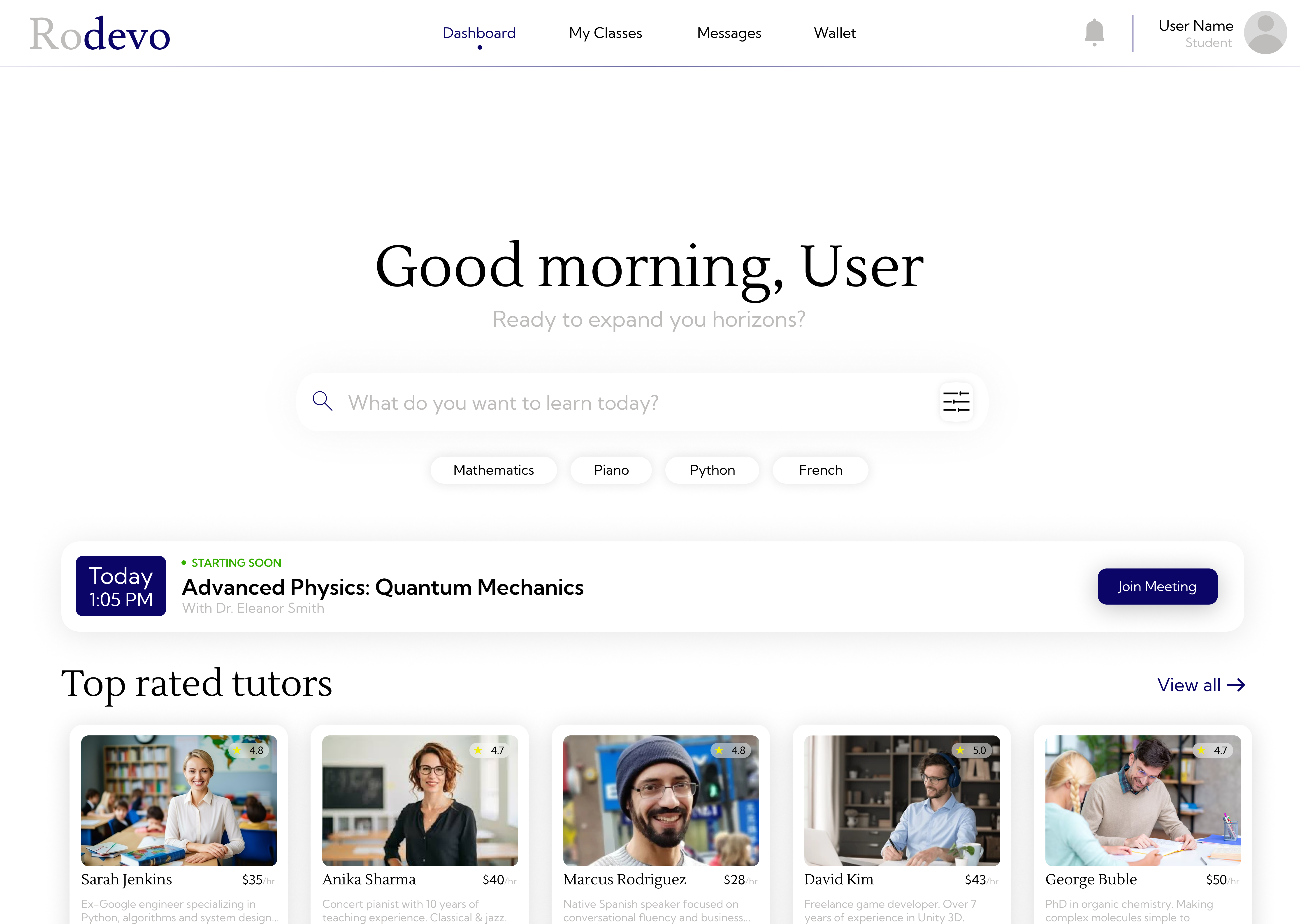 Rodevo is a tutoring platform that connects students with the right tutors. Our main focus is making the platform as secure as possible, as well as making it efficient, clean, and organized so every user gets the best experience on the platform. Tutors' qualifications and credentials are strictly verified, ensuring a professional learning environment. Students can find the right tutor efficiently with our matching algorithm, and many more advanced features. Rodevo removes administrative and technical issues that users may encounter, allowing them to focus on learning and self development. Currently, our platform is still being developed, but your support in any way will benefit us, resulting in an earlier release. For more information about Rodevo, check out our waitlist website!