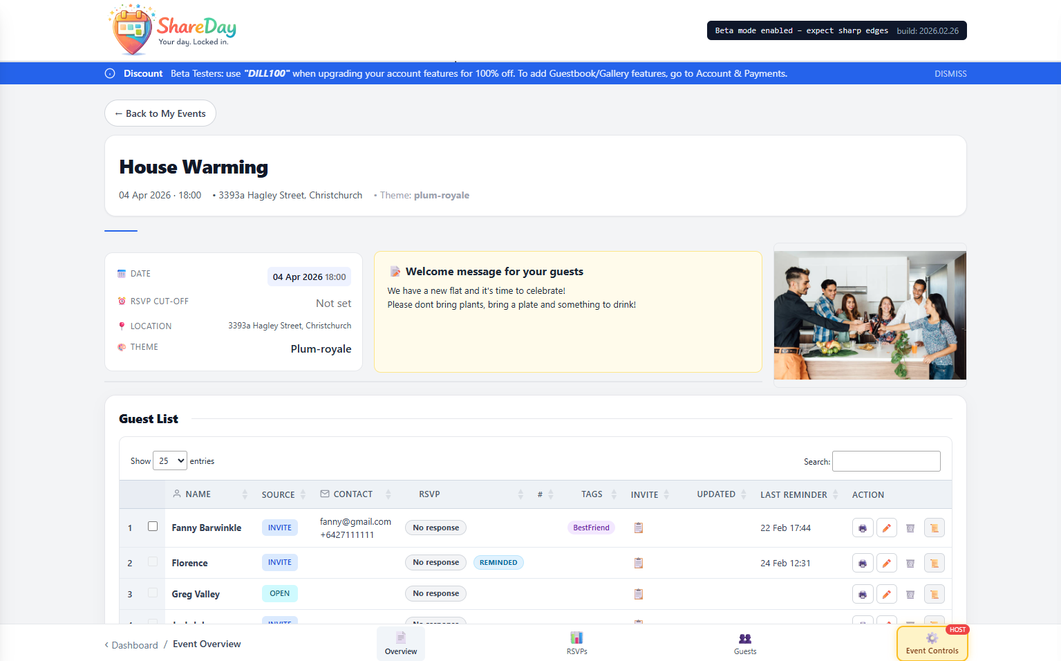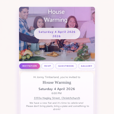 ShareDay is a modern, web-based event planning platform that makes organising birthdays, BBQs, weddings, and private gatherings simple and stress-free. Hosts can create a custom event page in minutes, invite guests via email or SMS (NZ numbers supported), track RSVPs, manage seating, collect guestbook messages, and enable private photo galleries. Unlike bloated overseas platforms, ShareDay focuses on clarity and ease of use. No clutter. No complicated dashboards. Just the tools you actually need: -Custom event pages with templates -RSVP tracking -Guestbook messaging -Seating planner -Planning tools -QR code invites -Private photo galleries -SMS invitations (NZ only) Built in New Zealand, ShareDay is designed for real families and real events, not enterprise conference logistics. Made for busy parents by busy parents.