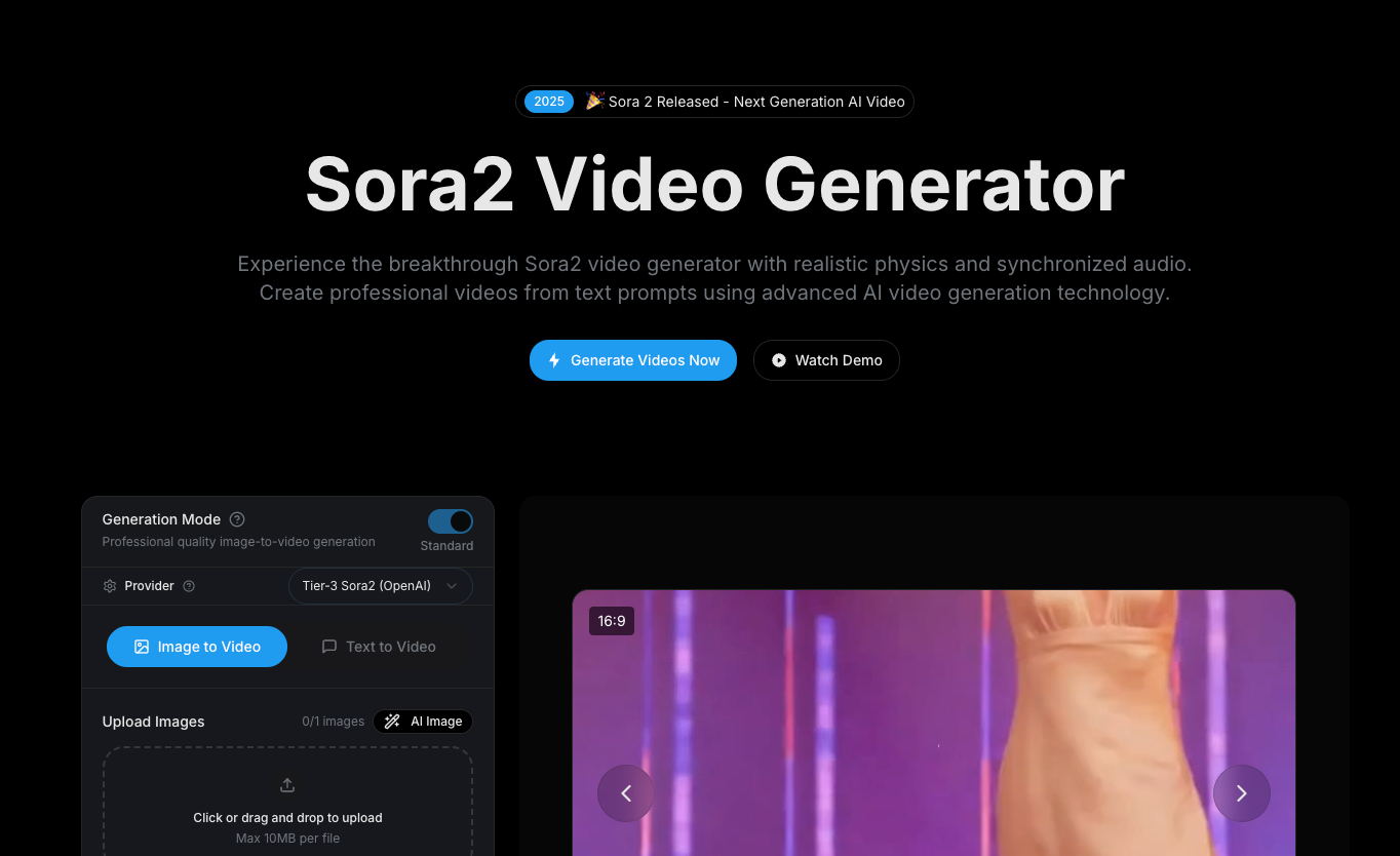 Sora2 Video Generator helps you create advanced AI videos with cutting-edge physics simulation. This powerful tool also includes synchronized audio generation, allowing you to produce high-quality, realistic content. You can generate engaging videos, leveraging advanced AI technology to bring your creative visions to life with ease and precision.