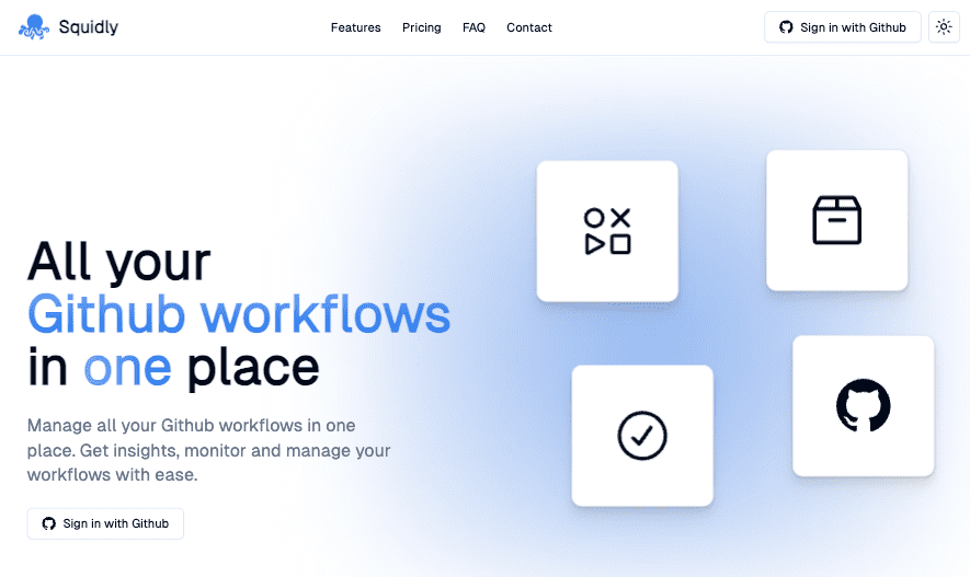 Squidly allows you to manage all your GitHub workflows in one centralized location. You can gain valuable insights, monitor your processes, and manage your automated workflows with ease to improve you