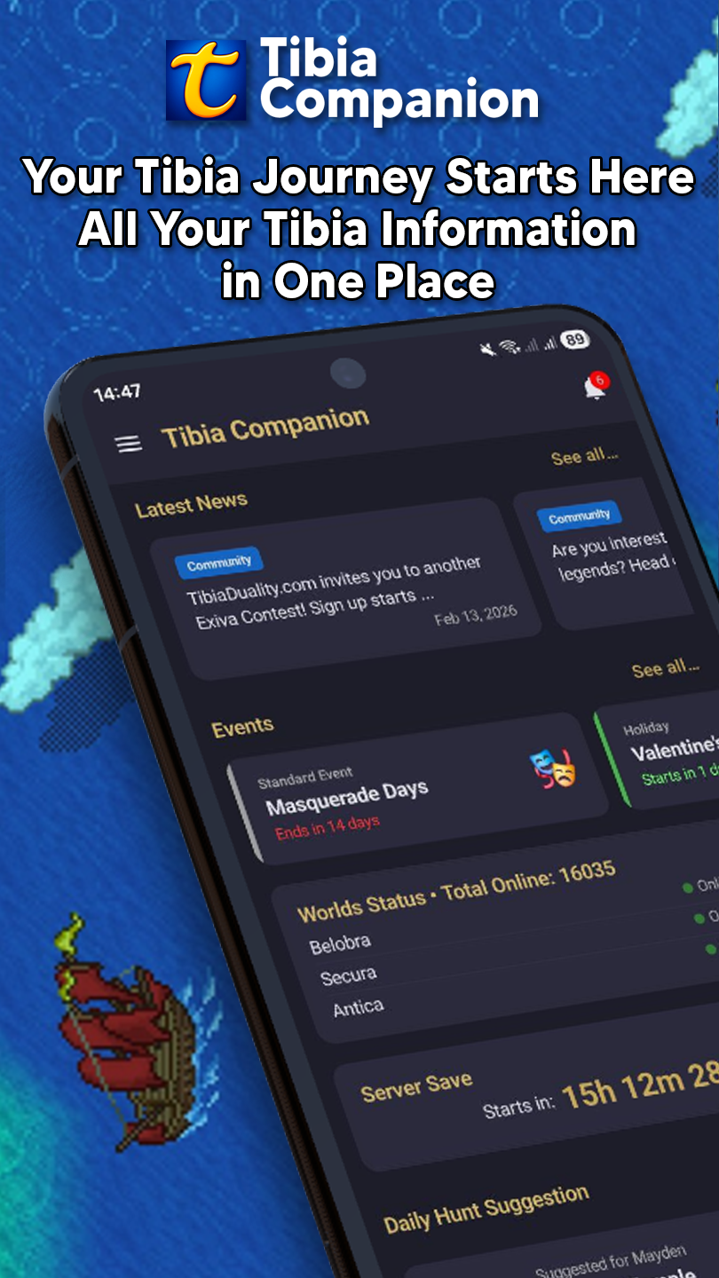 Hi everyone 👋 We built Tibia Companion to bring everything Tibia players need into one place. Track bosses, houses, events and more with ease. Start for free and level up your gameplay. We’d love your feedback! — Tibia Companion Team