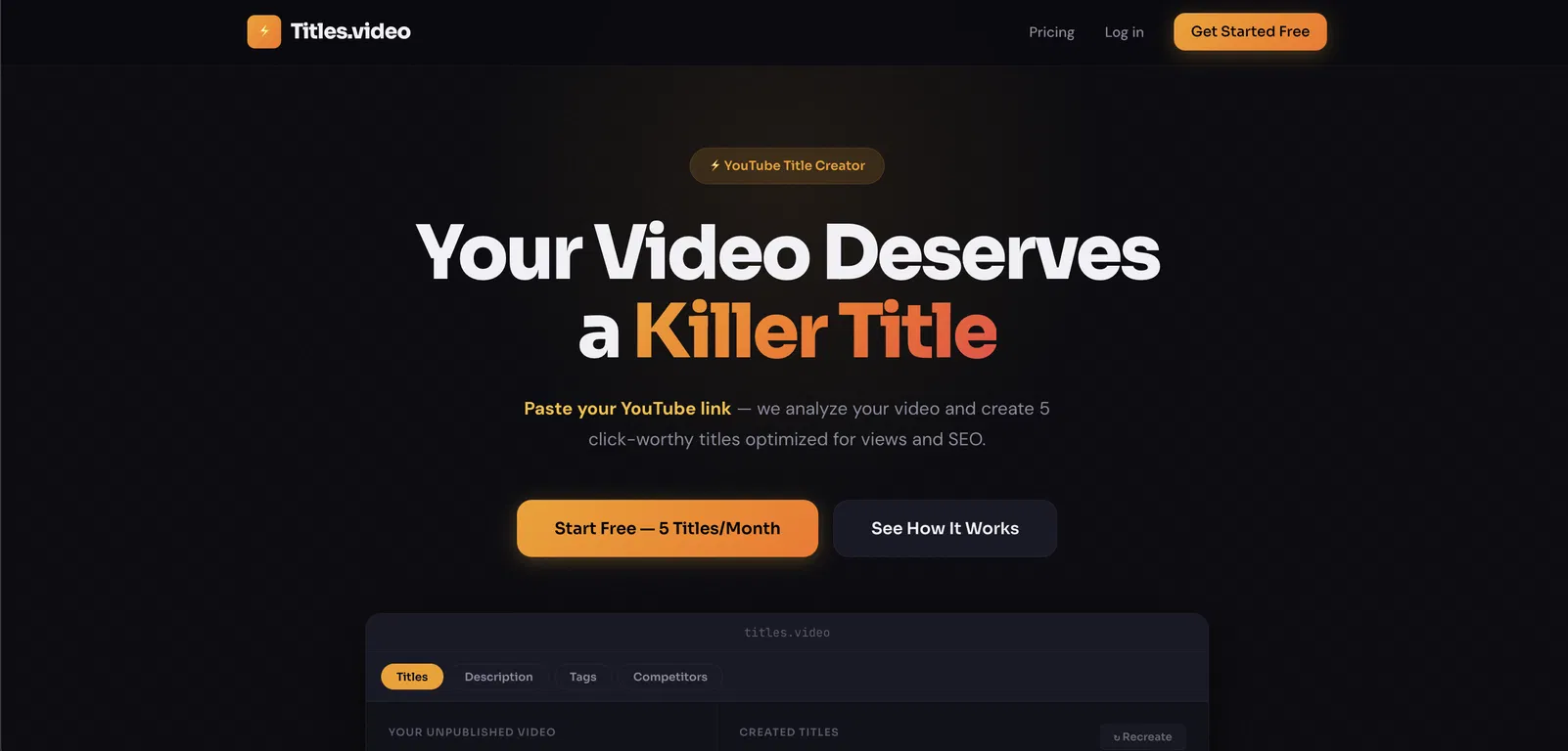 YouTube Title Creator helps you generate engaging, click-worthy titles from your video content in seconds. You can streamline your creative workflow by instantly producing multiple title options desig