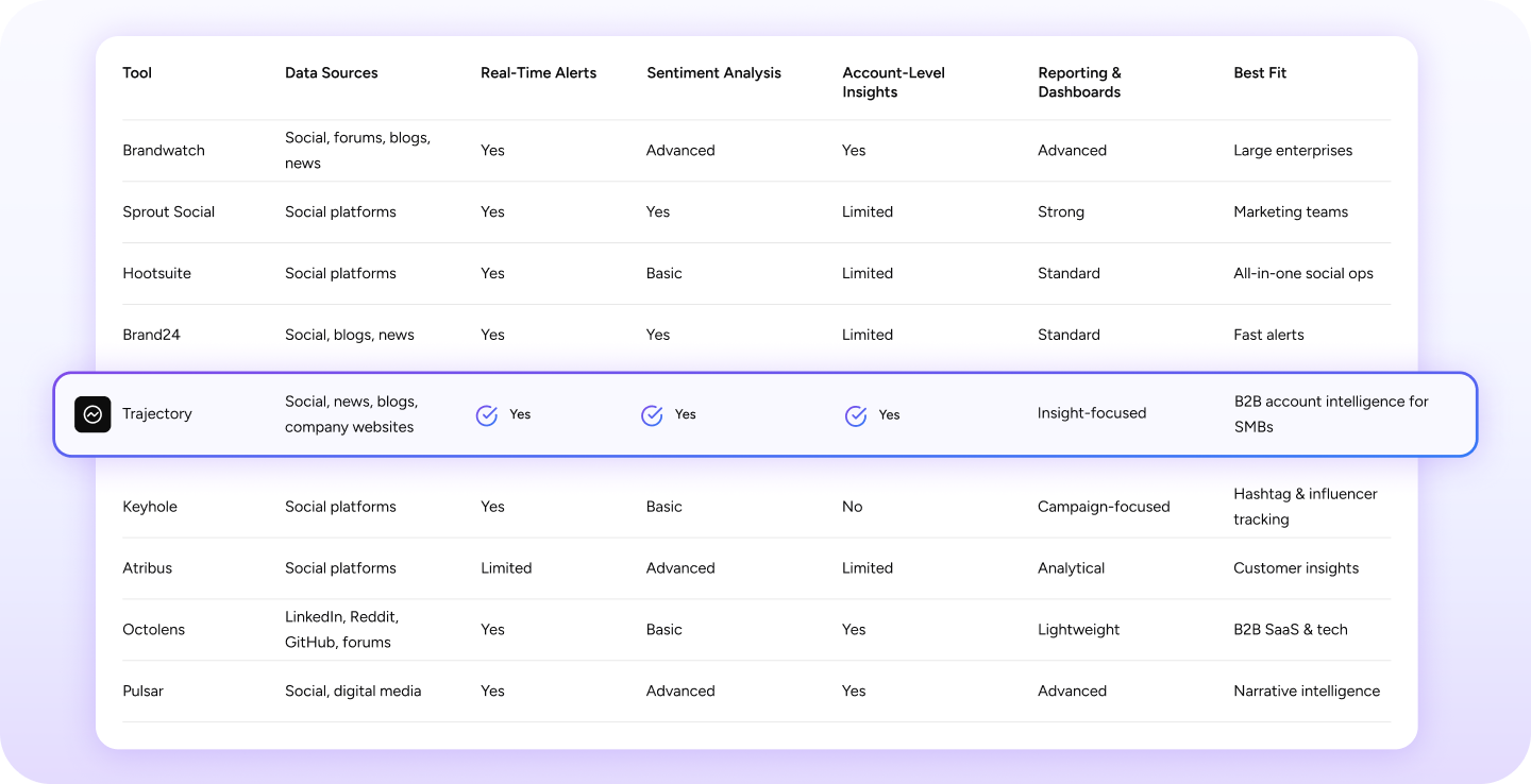 TrajectoryAI helps B2B teams uncover competitors’ hidden moves, monitor their GTM in real time, and turn raw market noise into clear, AI-prioritized signals that drive sales, product, and marketing.