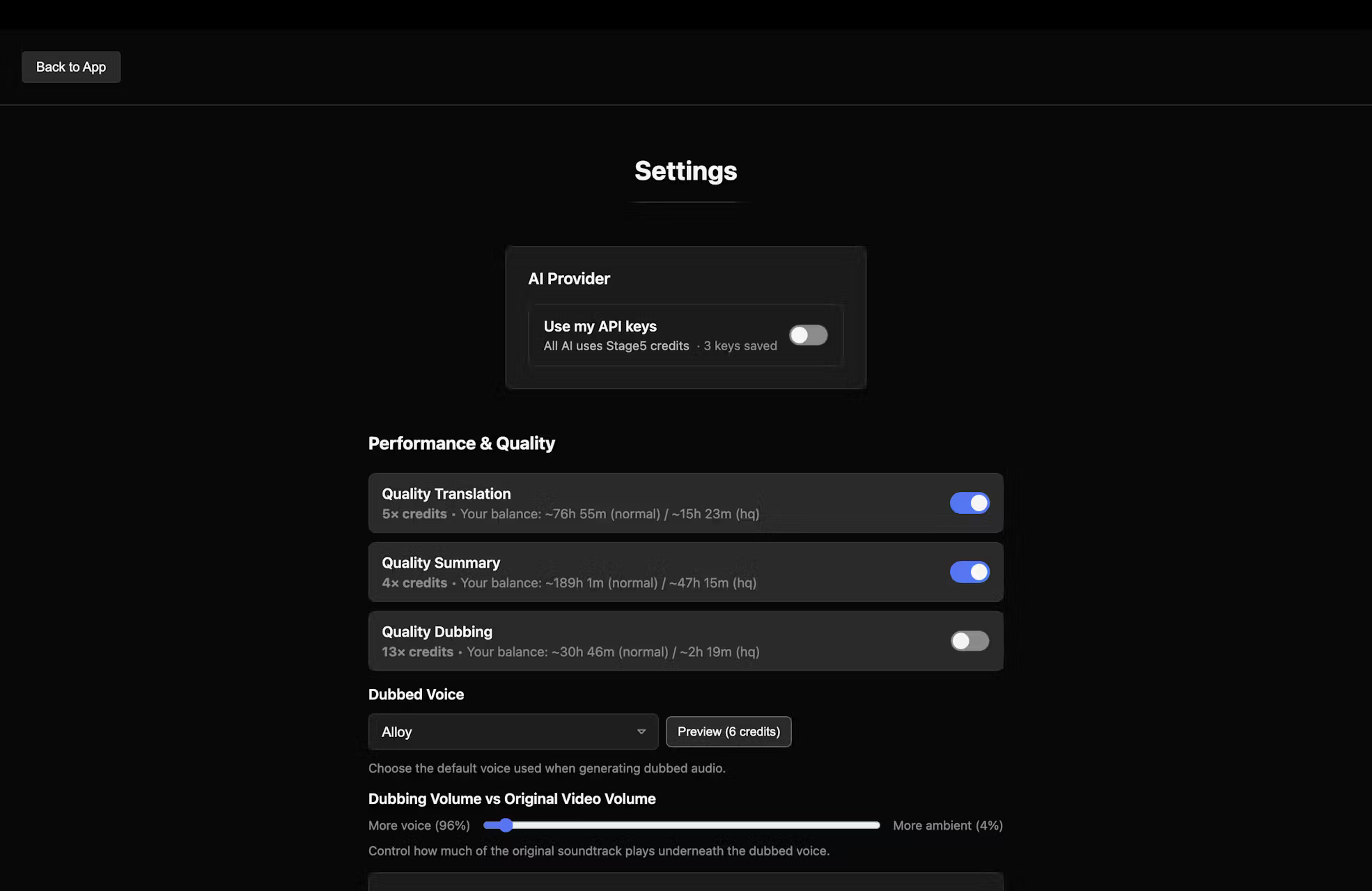 Desktop app for AI-powered video translation. Download videos from YouTube, transcribe with Whisper, translate to 30+ languages, and dub with AI voices. What makes it different: A two-pass translation system. GPT handles the initial translation, then Claude reviews for quality - catching idioms, cultural nuances, and awkward phrasing. It's a translator AND an editor. Free forever: Video downloading, subtitle editing & merging. Pay-as-you-go for translations ($1 = ~50 min of video) or bring your own API keys. No $30+/month subscriptions. Open source & privacy-focused - your videos stay on your machine.