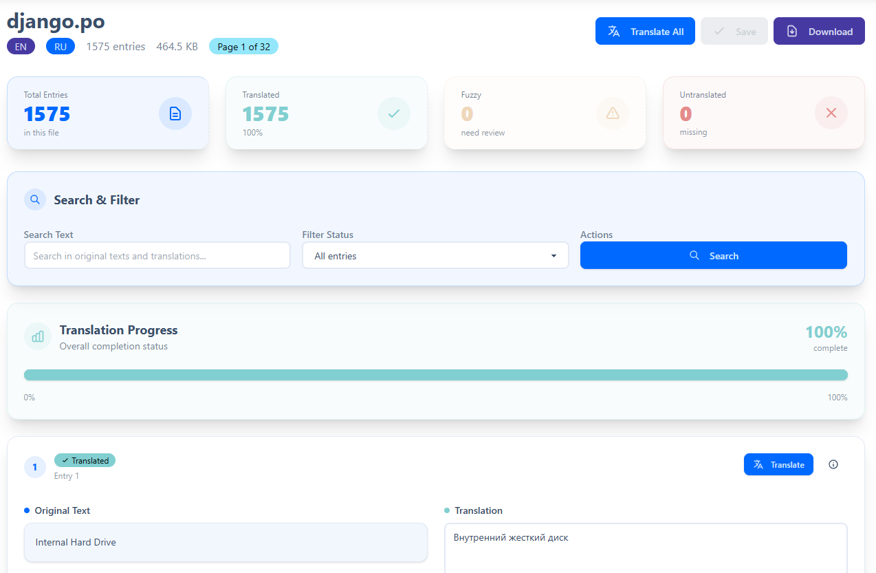 TranzlyWeb is a professional-grade translation management platform designed for developers, translators, and international teams. You can upload PO files and leverage powerful tools to streamline your