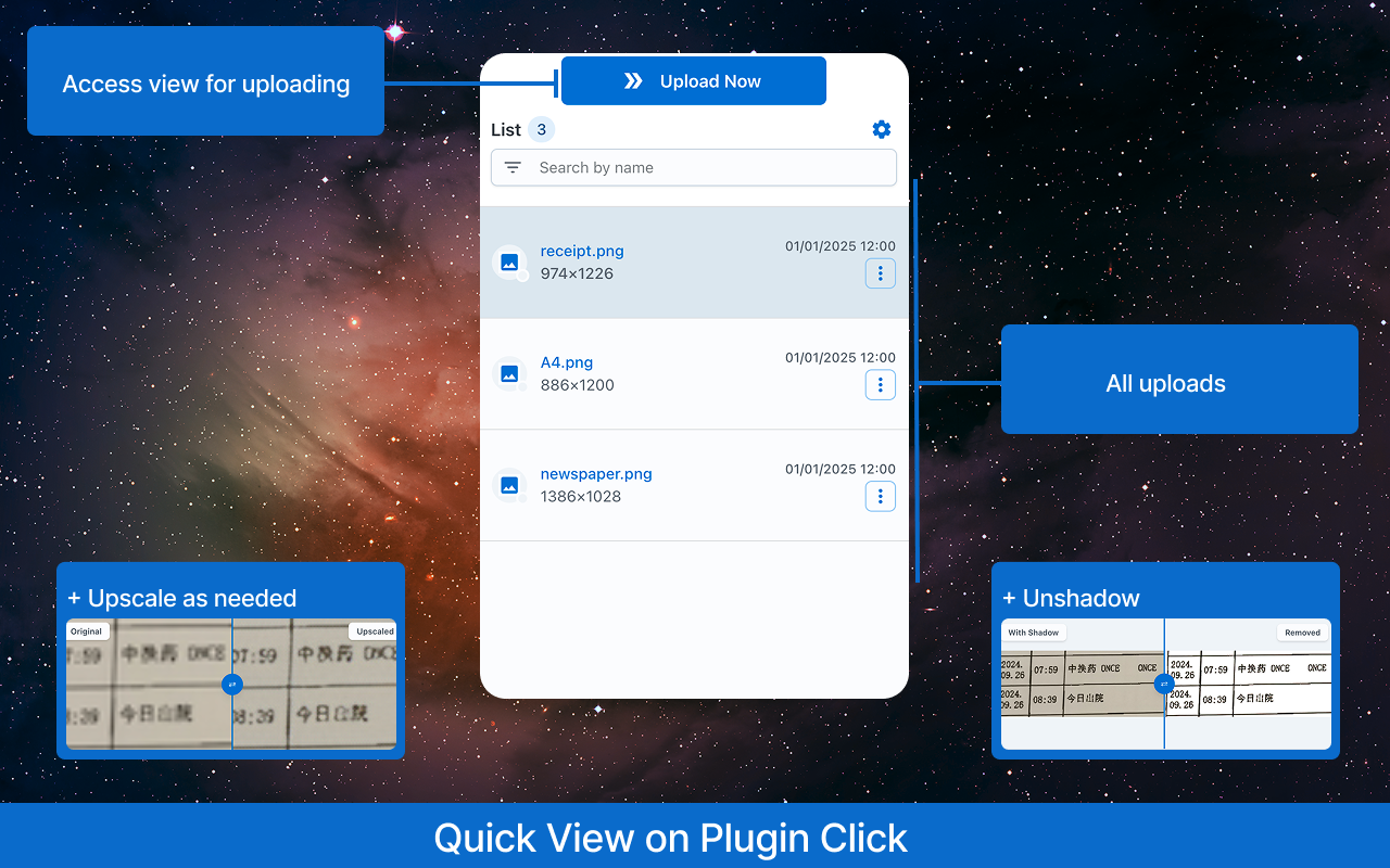 Turns your image into something that looks like real paper by eliminating shadows, distortions and blur. Features: • 🖼️ Perspective Fix: from 3D image to 2D, eliminating distortions. • ✂️ Auto Crop: intelligently detects and crops document edges. • 🎨 Paint: customise paper using paint tools. • ⚡ Performance: converts images to paper without delays (file not sent to internet). • 🎯 Precision: delivers highly accurate results (file quality is not lost). • 🔒 Offline Functionality: operates entirely offline, ensuring your data stays private. • ✨ Extra Options: output size control, watermarking (image/signature), metadata handling, and format selection. Shortcuts: • Paste files from your clipboard for processing: Ctrl/Cmd + V • Copy the modified selection to your clipboard: Ctrl/Cmd + Shift + C Notes: • 🧩 Compatibility: may vary across devices 😢. • ⏳ Processing Speed: depends on your system resources and file size.