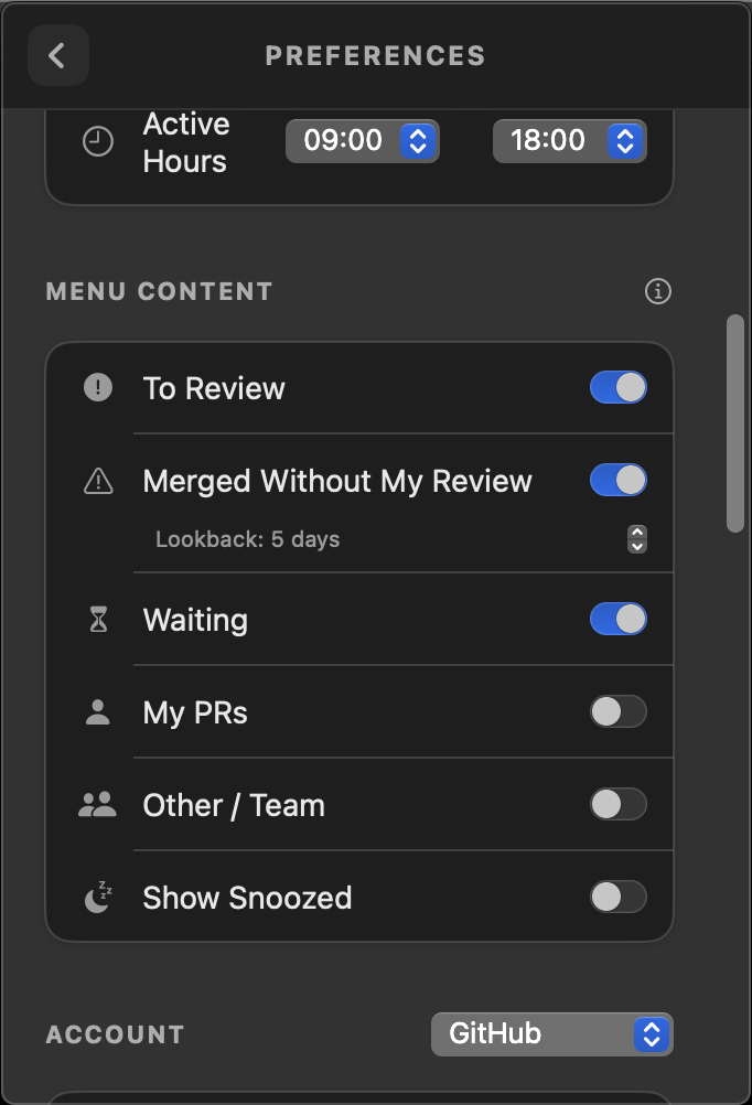 Unblockd — native macOS app for distraction-free PR monitoring across GitHub, GitLab & Bitbucket. Built with Swift, open source (MIT). Why Unblockd? Most PR tools bombard you with notifications. Unblockd flips the model: instead of interrupting your flow, it gives you a calm menu bar badge showing exactly how many PRs need your attention — checked at your pace. Key features: 🔒 Privacy-first — all data processed locally, tokens in macOS Keychain, zero telemetry 🕐 Office Hours — notifications only during work hours you define ⚙️ Configurable polling — 15 to 120 min intervals 🎯 Smart filters — drafts de-prioritized, blockers surfaced first 🌗 Native macOS — light/dark mode, real menu bar badge Perfect for developers juggling multiple repos who value deep work over constant interruptions. Open source. No tracking. No subscriptions.