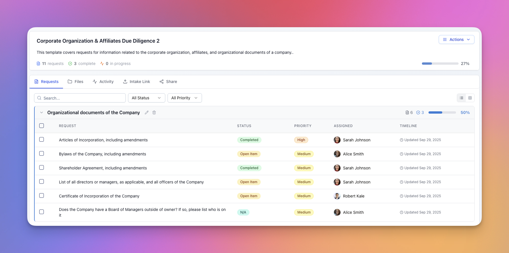 Due diligence simplified in a unified workspace
