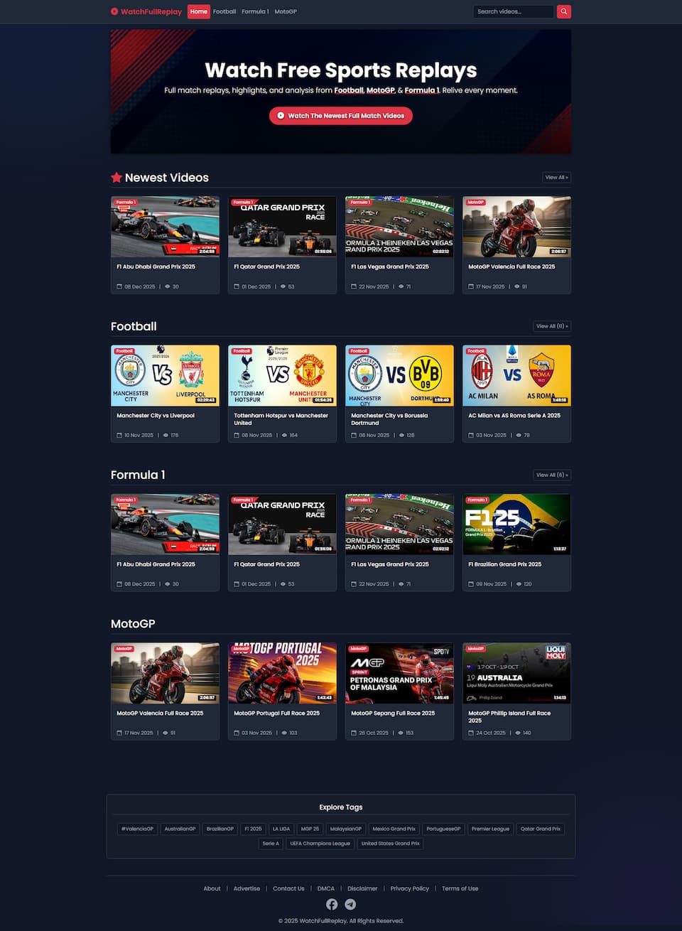 WatchFullReplay.com brings you full match replays, highlights, and analysis from your favorite sports — football, motogp, F1, and more. Relive every epic moment anytime, anywhere.