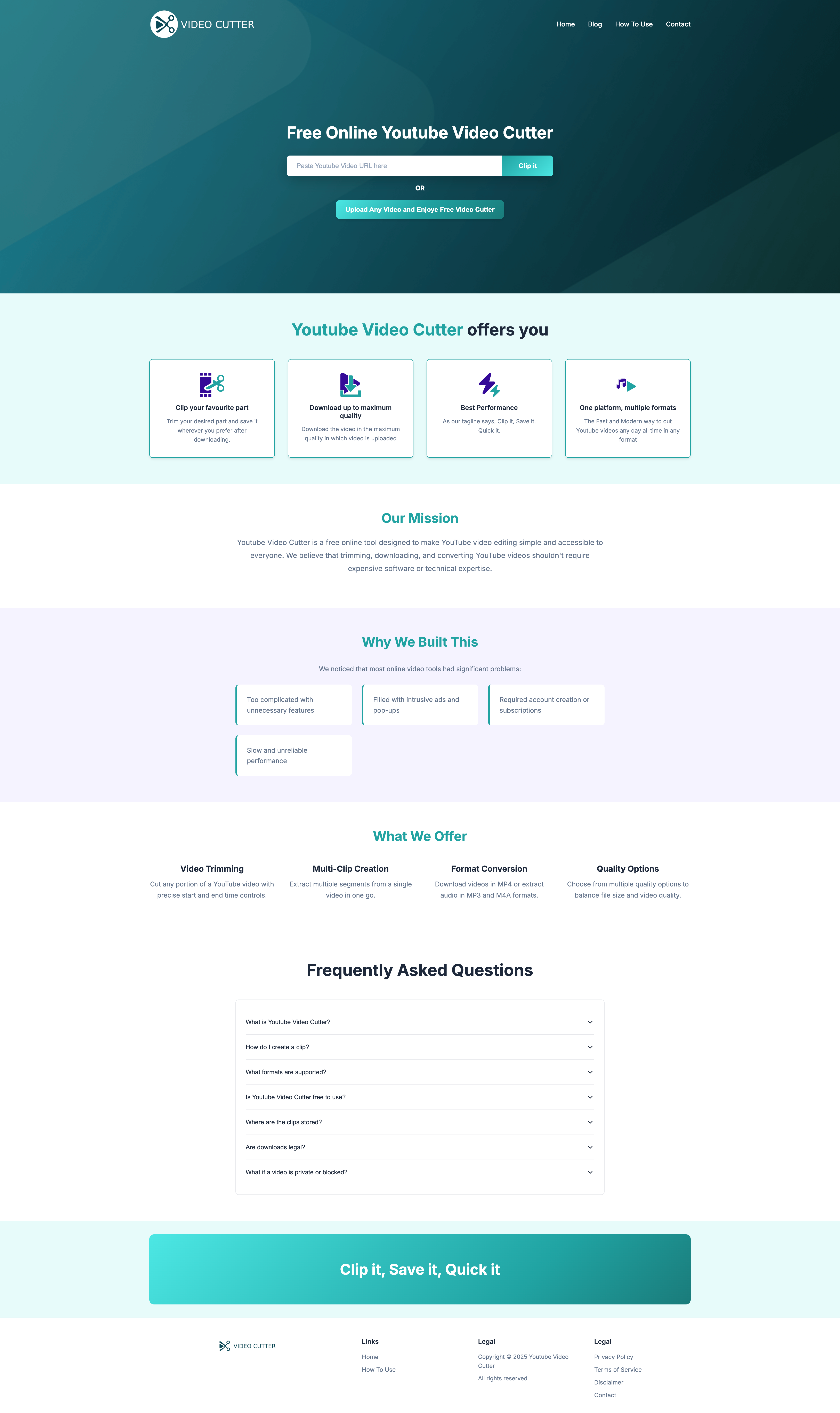 Youtube Video Cutter is a free online tool designed to help you trim and clip videos directly from YouTube. You can quickly create single clips or multiple segments from a single video, allowing for efficient content creation and sharing. The platform is built to be fast, easy to use, and requires no registration to start editing. This tool is ideal for anyone needing a simple way to isolate specific moments from longer YouTube content without downloading complex software.